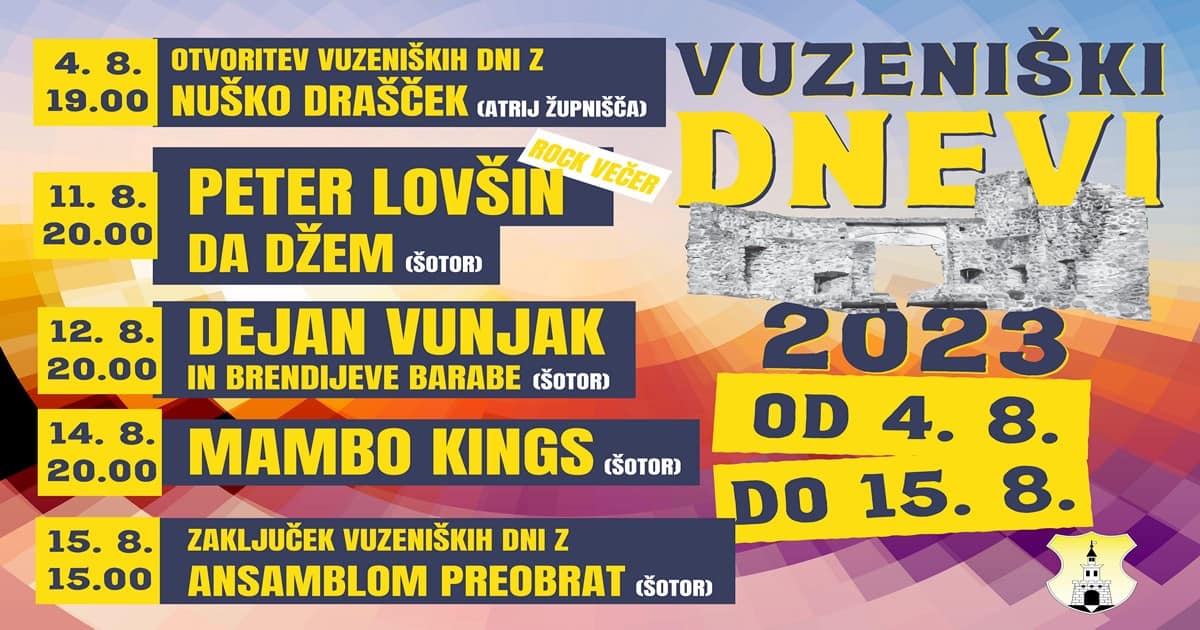 V torek, 15. avgusta 2023, na praznični dan Marijinega vnebovzetja, ob 15. uri pa bodo Vuzeniške dni zaključili v narodno-zabavnih ritmih z mladimi perspektivnimi muzikanti in sicer Ansamblom Preobrat.