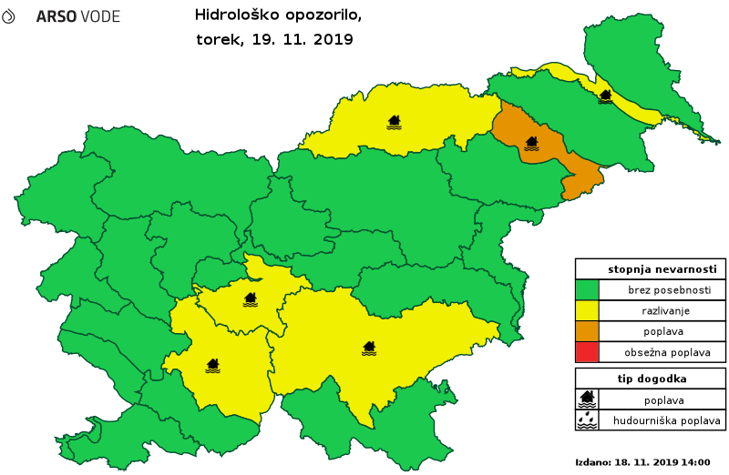 Po zadnjih objavljenih podatkih Agencije RS za okolje (ob 14.00) naj bi pretok Drave na meji z Avstrijo predvidoma do 19. ure dosegel 1350 m3/s, nato pa do konca dneva padel na 1200 m3/s. V spodnjem toku se pretok Drave zaradi lokalnih dotokov poveča še za okoli 120 m3/s. Drava ob tem poplavlja na več mestih ob strugi.