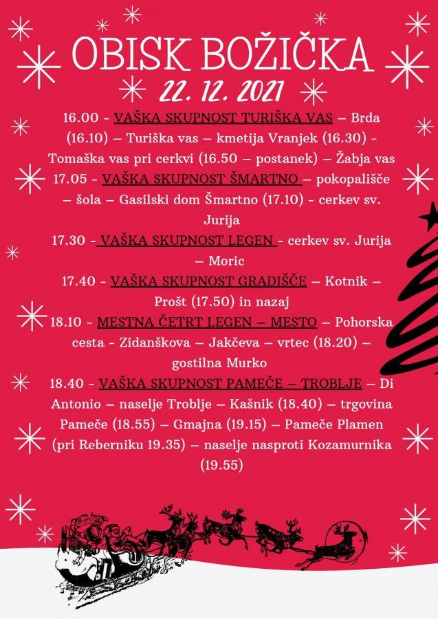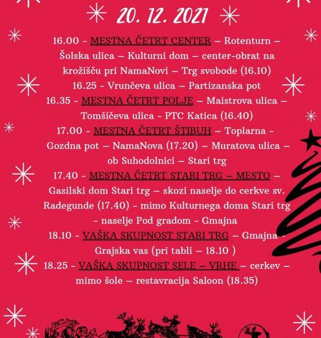 Med 20. in 22. decembrom bo Božiček s svojim posebnim prazničnim vozilom prevozil celo občino, obiskal bo vse mestne četrti in vaške skupnosti ter pozdravil in obdaril otroke.