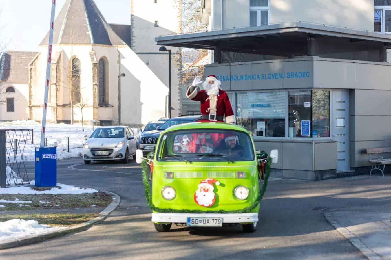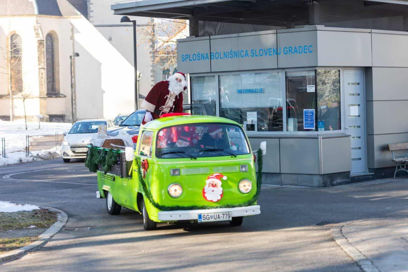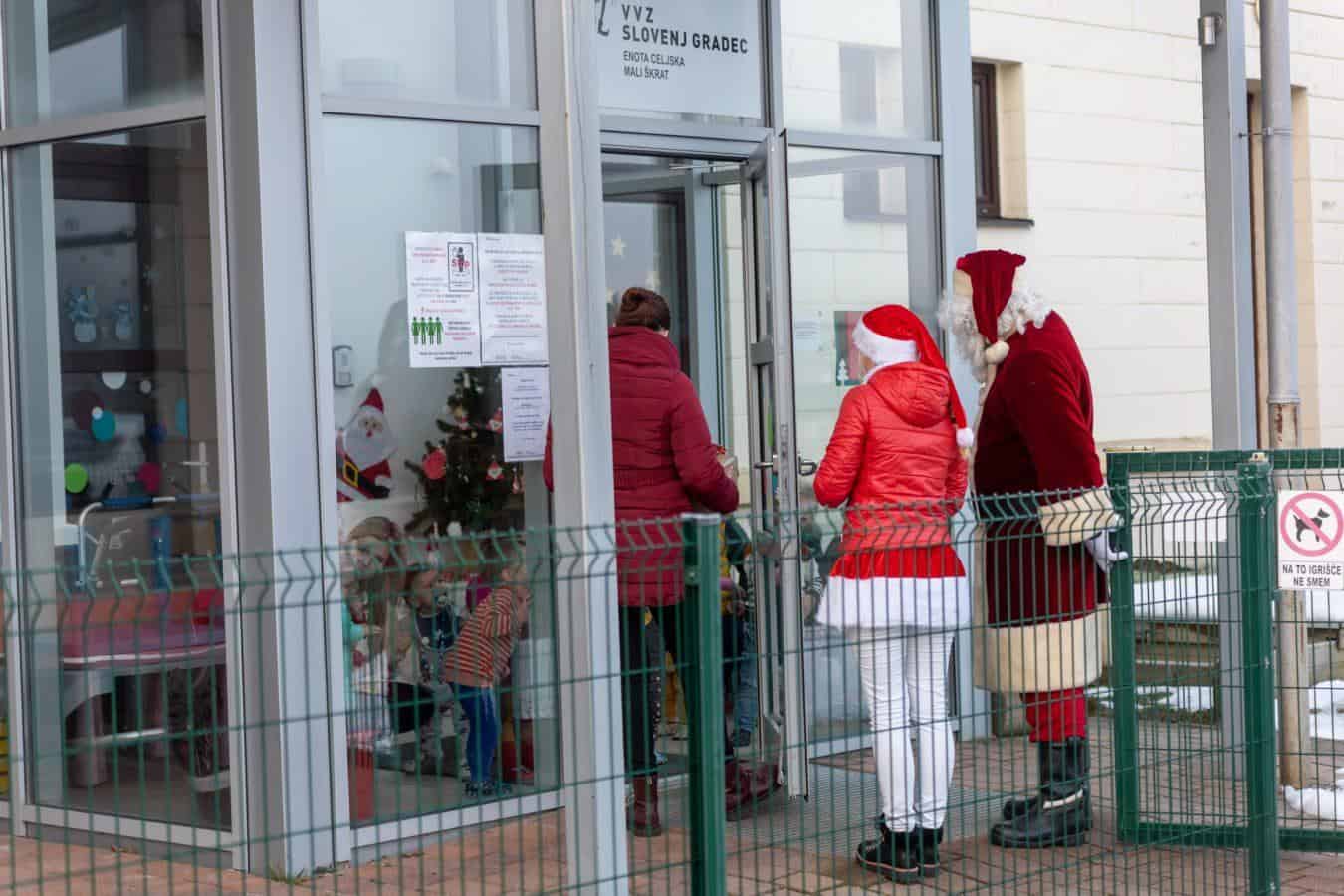 V dopoldanskem času se je Božiček s spremstvom ustavil pri najmlajših v Podgorju, na Celjski cesti, na Maistrovi, v Mislinji, v Doliču Šmartnem, Legnu, Pamečah, na Selah in tudi v SB Slovenj Gradec. Med drugim sta mu družbo delala slovenjgraški župan Tilen Klugler in župan Mislinje Bojan Borovnik.