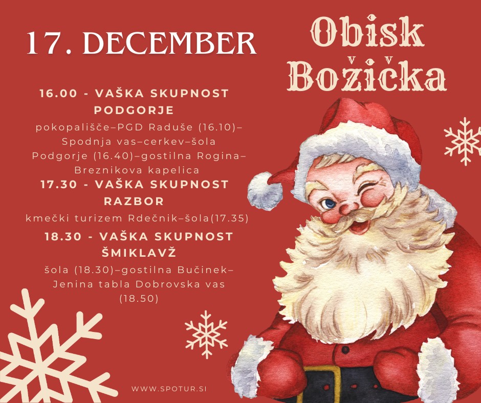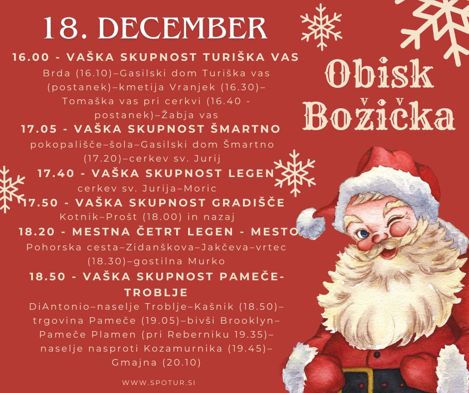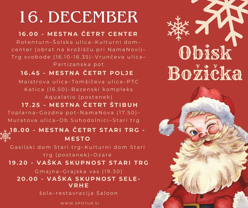 Ne pozabite toplo se obleči in s seboj prinesti dobro voljo. Traso Božičkove poti si lahko ogledate na fotografijah, zato si pravočasno izberite svojo točko ob poti in se pridružite ustvarjanju nepozabnega decembrskega vzdušja.
