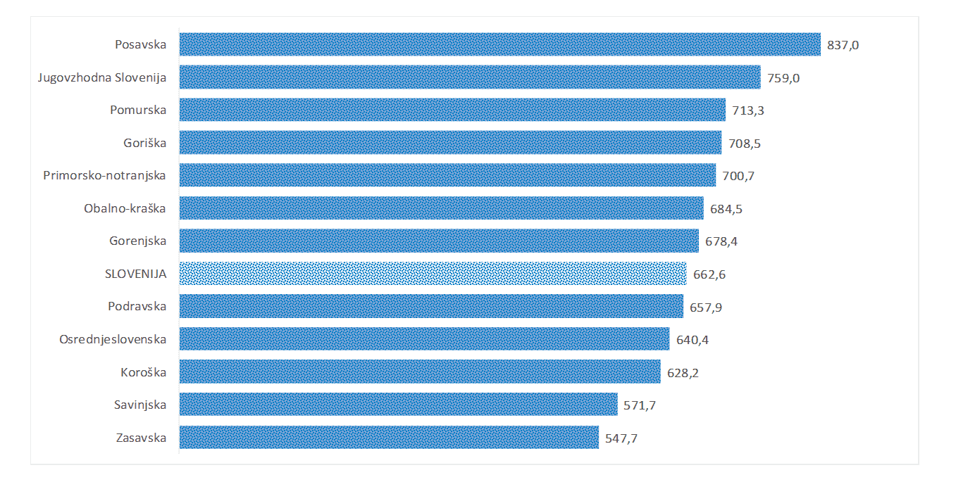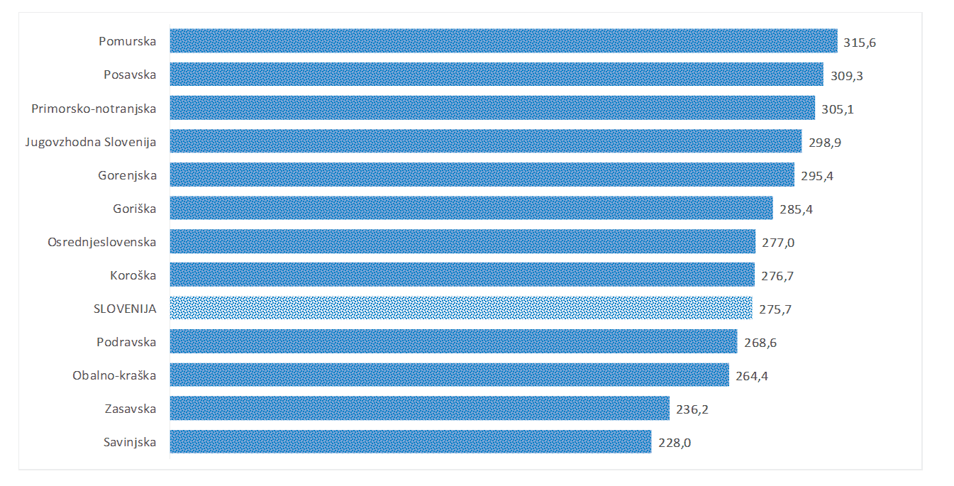 14 dnevno število potrjenih primerov na 100.000 prebivalcev Slovenije po statističnih regijah, 9. 2. 2021