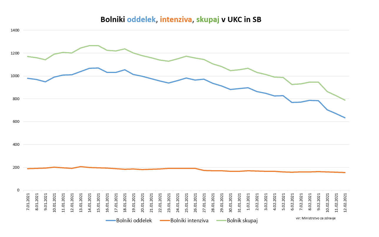 Bolnišnično oskrbo tako danes potrebuje 39 manj pacientov, kot smo poročali včeraj, in sicer 789. Na intenzivni negi se zdravi 154 pacientov oziroma 3 manj kot smo poročali včeraj, je pojasnila Bratuša.