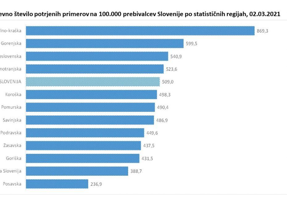 Podatki o 14 in 7-dnevni incidenci na ravni državi pa tudi za nekatere regije predvsem za Obalno-Kraško, Osrednjeslovensko pa tudi Gorenjsko regijo, so nekoliko slabši, kar je vidno tudi v tabeli. Pri tem je Maja Bratuša izpostavila, da je 7-dnevna incidenca na državni ravni najslabša v Obalno-Kraški regiji, sledijo Gorenjska in Koroška. Vse tri regije imajo danes nekoliko višjo incidenco kot so poročali včeraj.