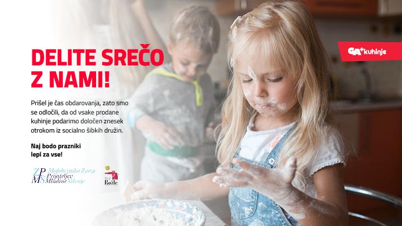 AKCIJSKE CENE ZA DOBER NAMEN: GA+kuhinje bodo v sodelovanju z Medobčinsko Zvezo Prijateljev Mladine Velenje od vsake prodane kuhinje podarili določen znesek za obdarovanje otrok!