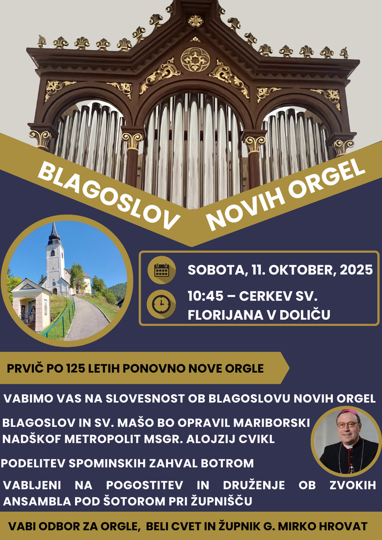 Z veseljem vabijo vse krajanke in krajane, pa tudi ostale občanke in občane ter obiskovalce od drugod, da se jim pridružite na posebni slovesnosti blagoslova in prvega igranja novih orgel v soboto, 11. oktobra 2025.