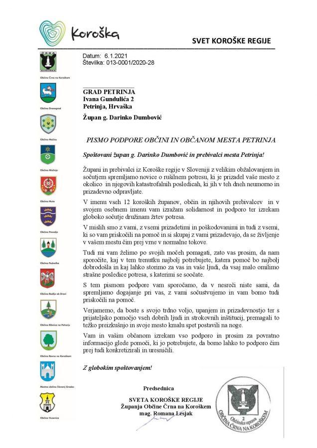 Župani in prebivalci iz Koroške regije v Sloveniji z velikim obžalovanjem in