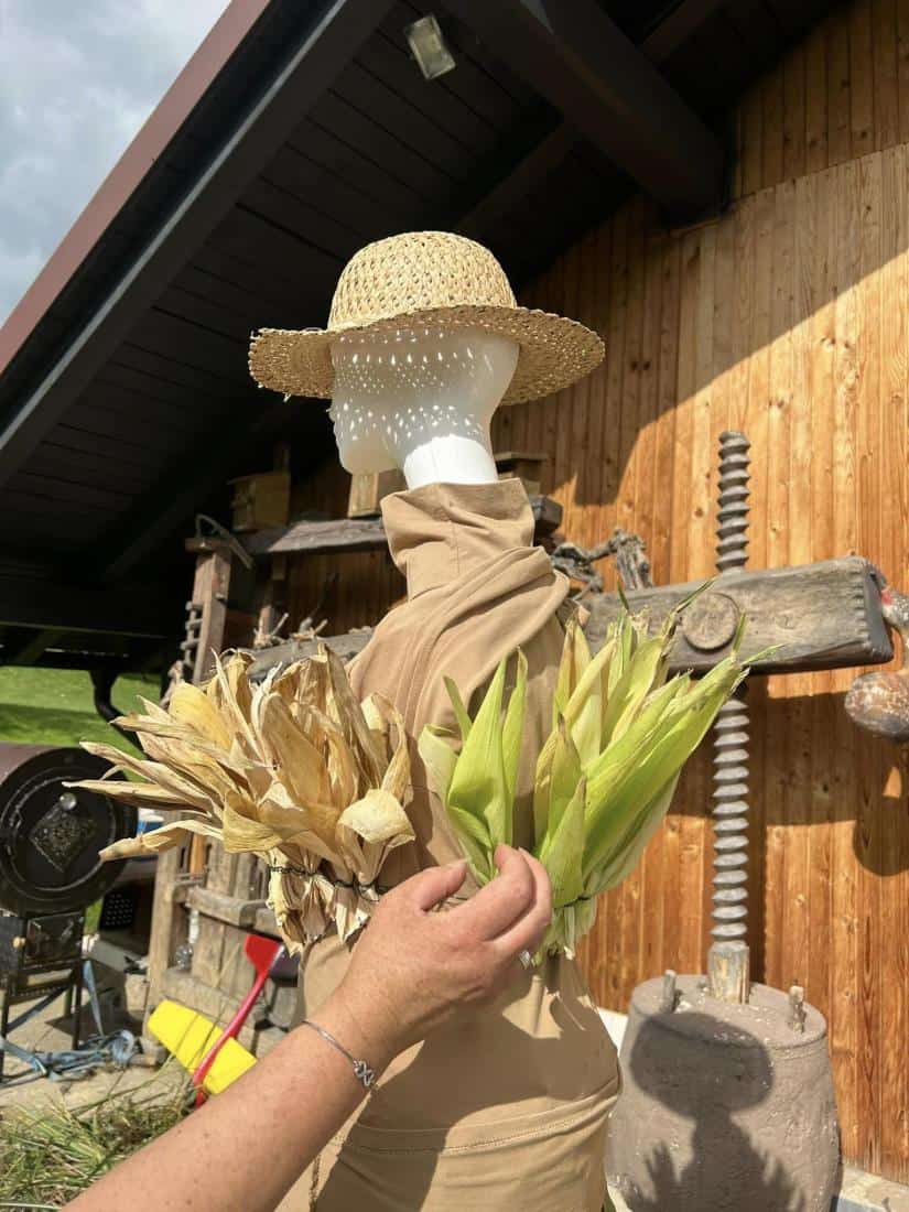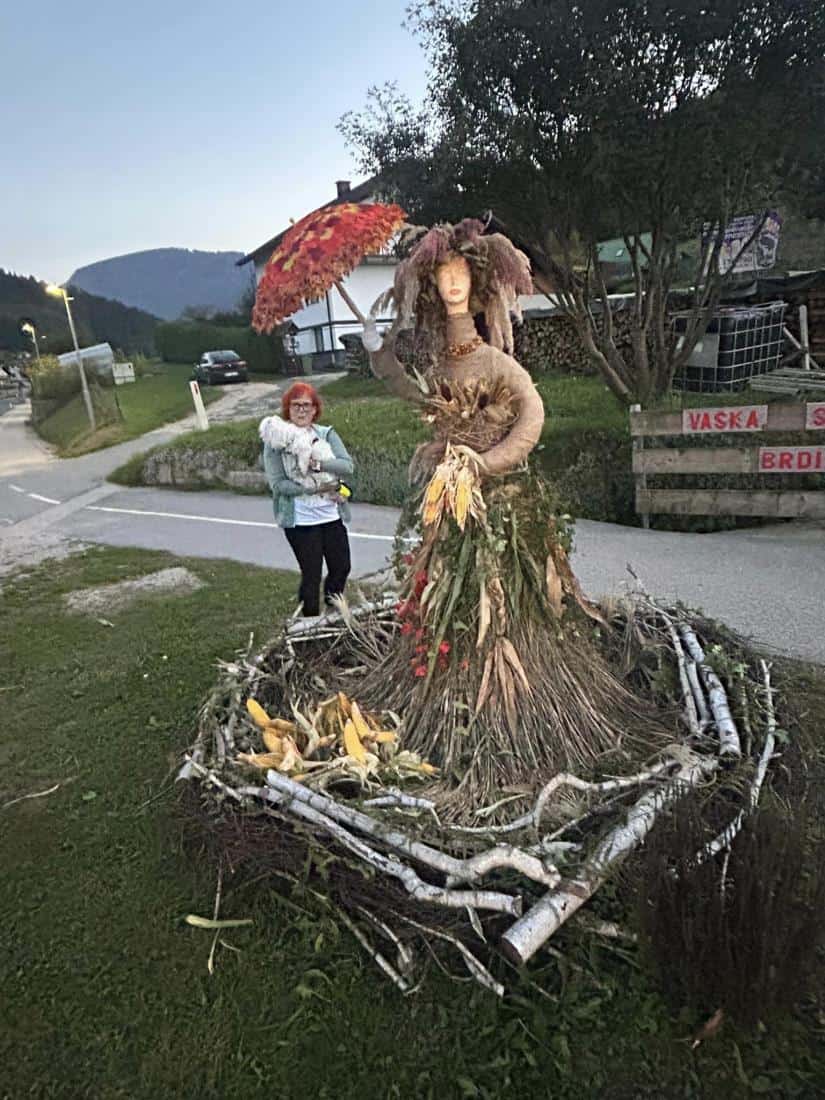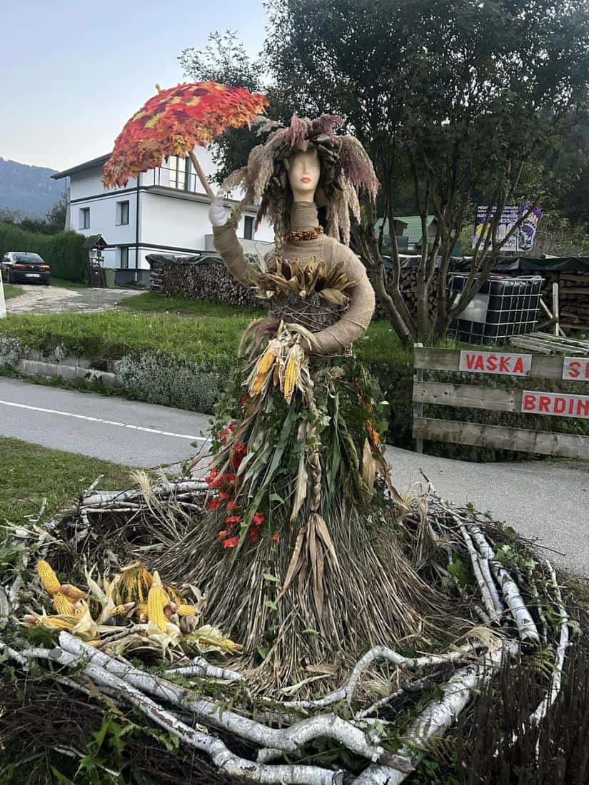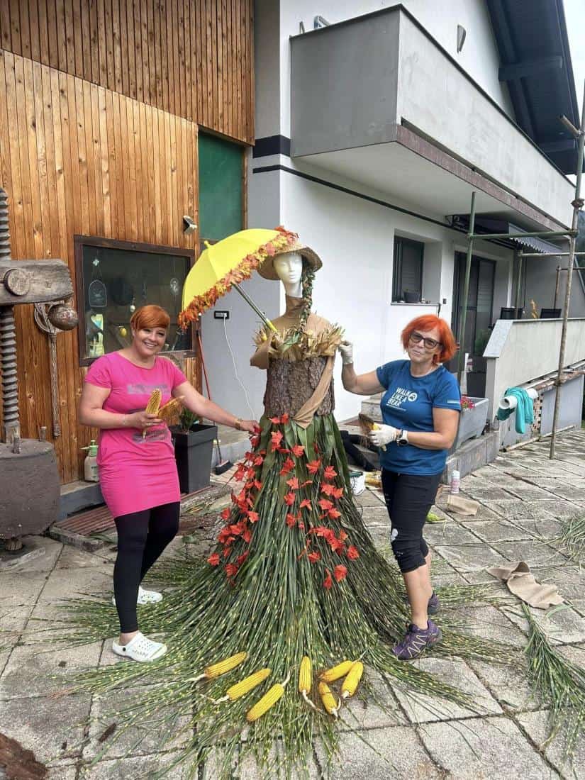 Tetka Jesen Vaške skupnosti Brdinje vabi, da postojite ob njej, naredite kakšno fotografijo. ''Uživajte v barvah in lepotah jeseni,'' pravijo ustvarjalke kreacije, ki so tetko Jesen ustvarile vse od ideje do končne izvedbe.