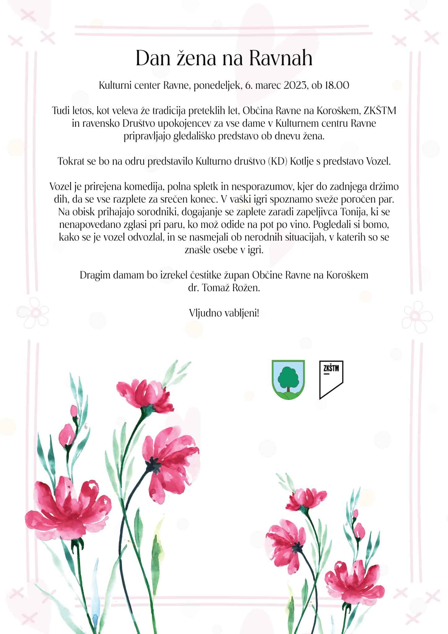 Dragim damam pa bo izrekel čestitke tudi župan Občine Ravne na Koroškem dr. Tomaž Rožen. Vstop je seveda prost. Vljudno vabljeni.