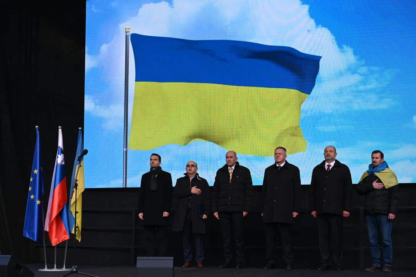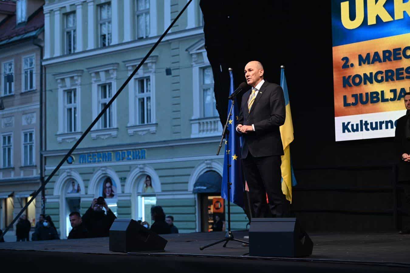 Tudi premier Janez Janša je z zbranimi delil nekatere informacije, ki jih te dni dobiva iz Ukrajine. "Umirajo ljudje. Ne le vojaki, umirajo civilisti, žene in otroci," je izpostavil. "Ne borijo se le za svobodo, demokracijo in evropsko prihodnost. Borijo se za življenje," je dodal in navedel tudi podatek, da se je v Ukrajino vrnilo boriti že 80.000 Ukrajincev, ki sicer živijo drugje.
