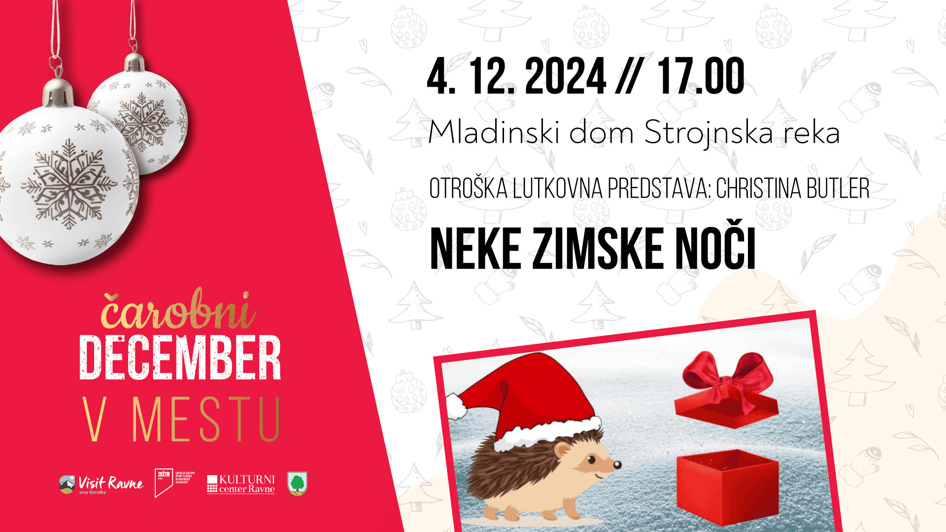 Predstava bo očarala tako najmlajše kot tudi tiste, ki uživajo v toplih zgodbicah, prežetih s čarobnostjo zime. Pridružite se nam na tem čudovitem dogodku in doživite pravo zimsko pravljico v prijetnem ambientu.
