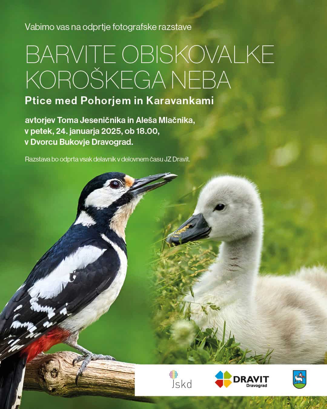 Javni zavod Dravit v sodelovanju z JSKD Dravograd in Občino Dravograd organizirajo izjemno fotografsko razstavo z naslovom Barvite obiskovalke koroškega neba: Ptice med Pohorjem in Karavankami.