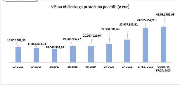 Višina proračuna Mestne občine Slovenj Gradec za leto 2023 znaša 43.092.701,96 evrov. Kot je razvidno iz spodnje tabele, proračun Mestne občine Slovenj Gradec še nikoli ni bil tako visok.