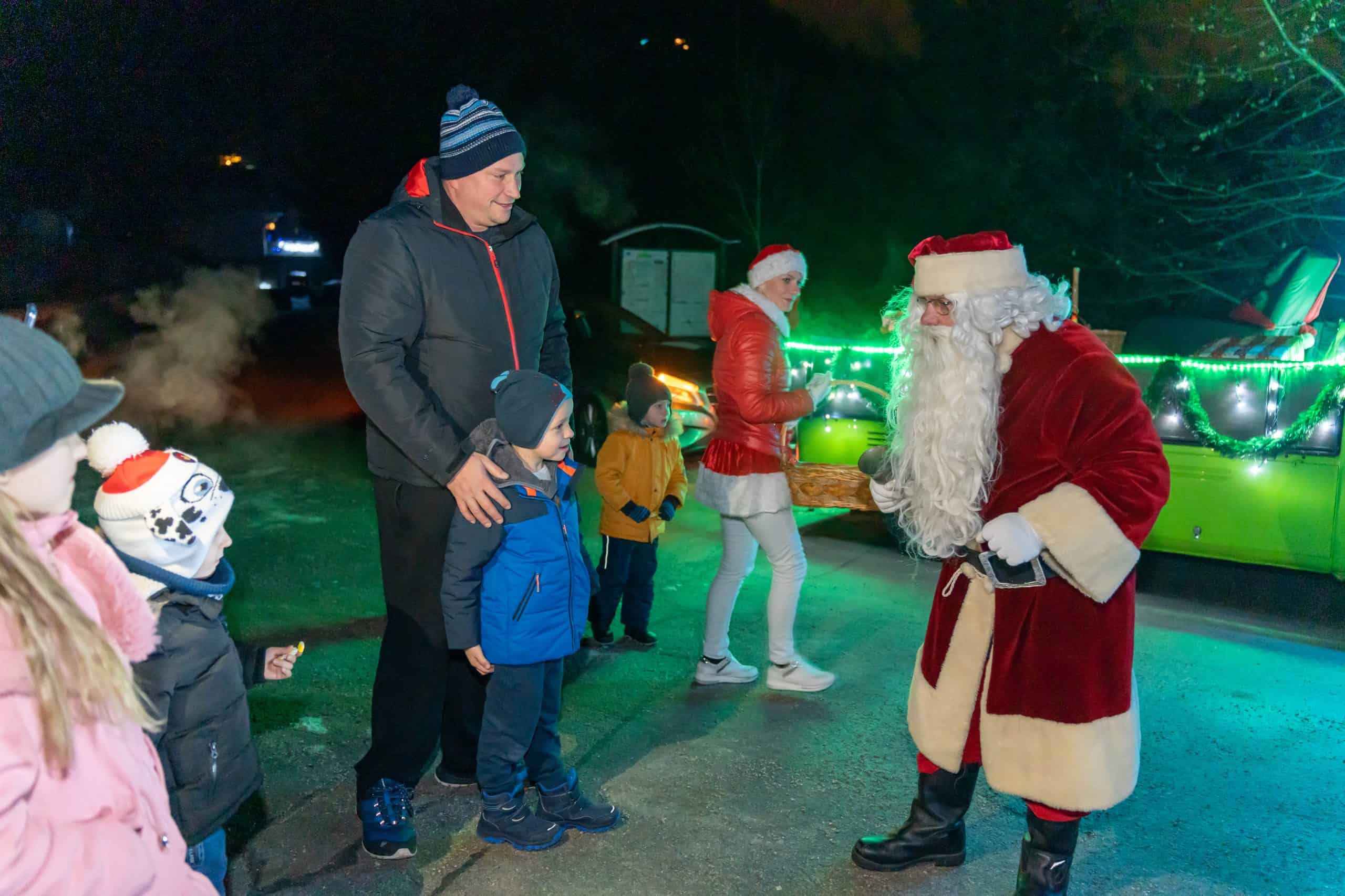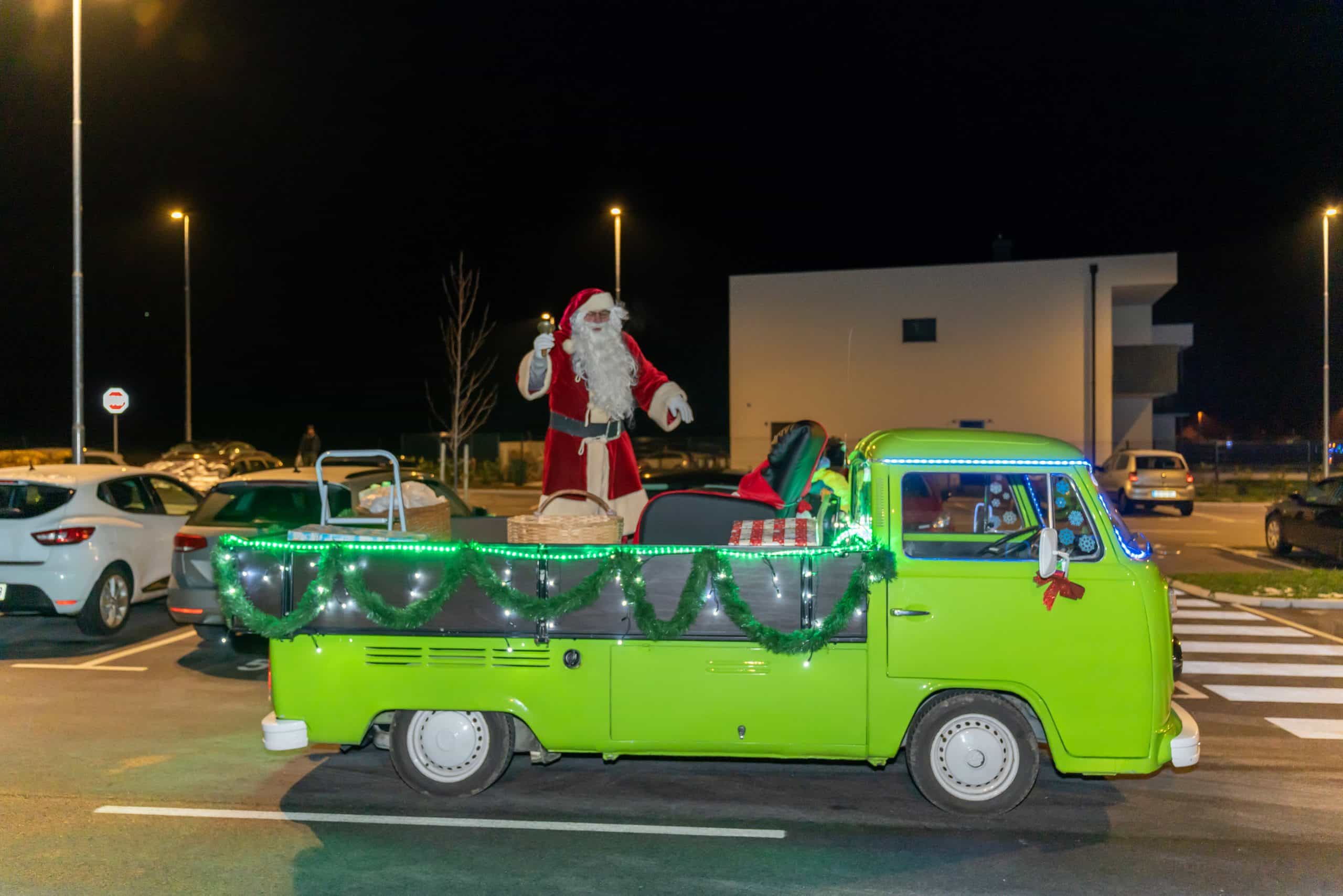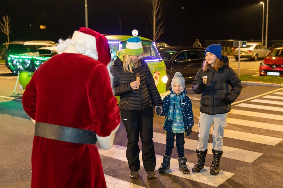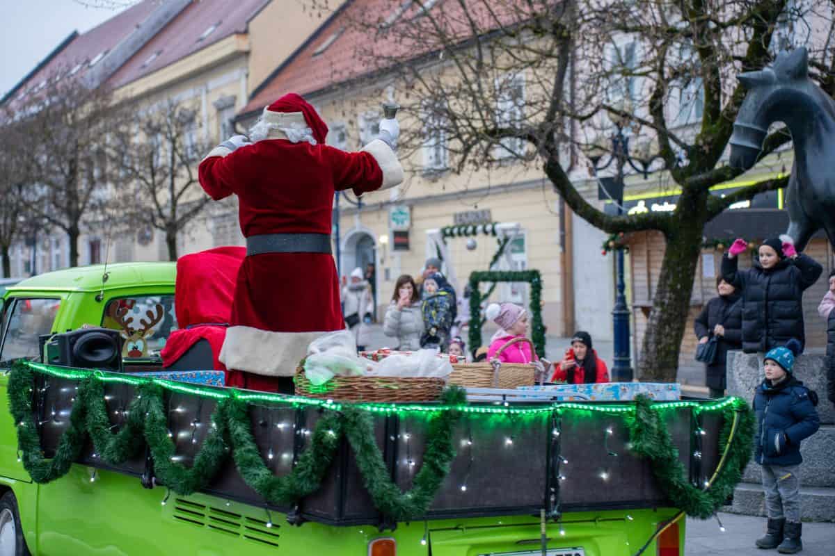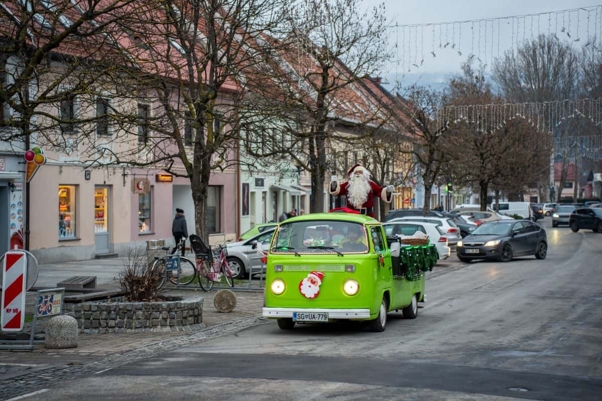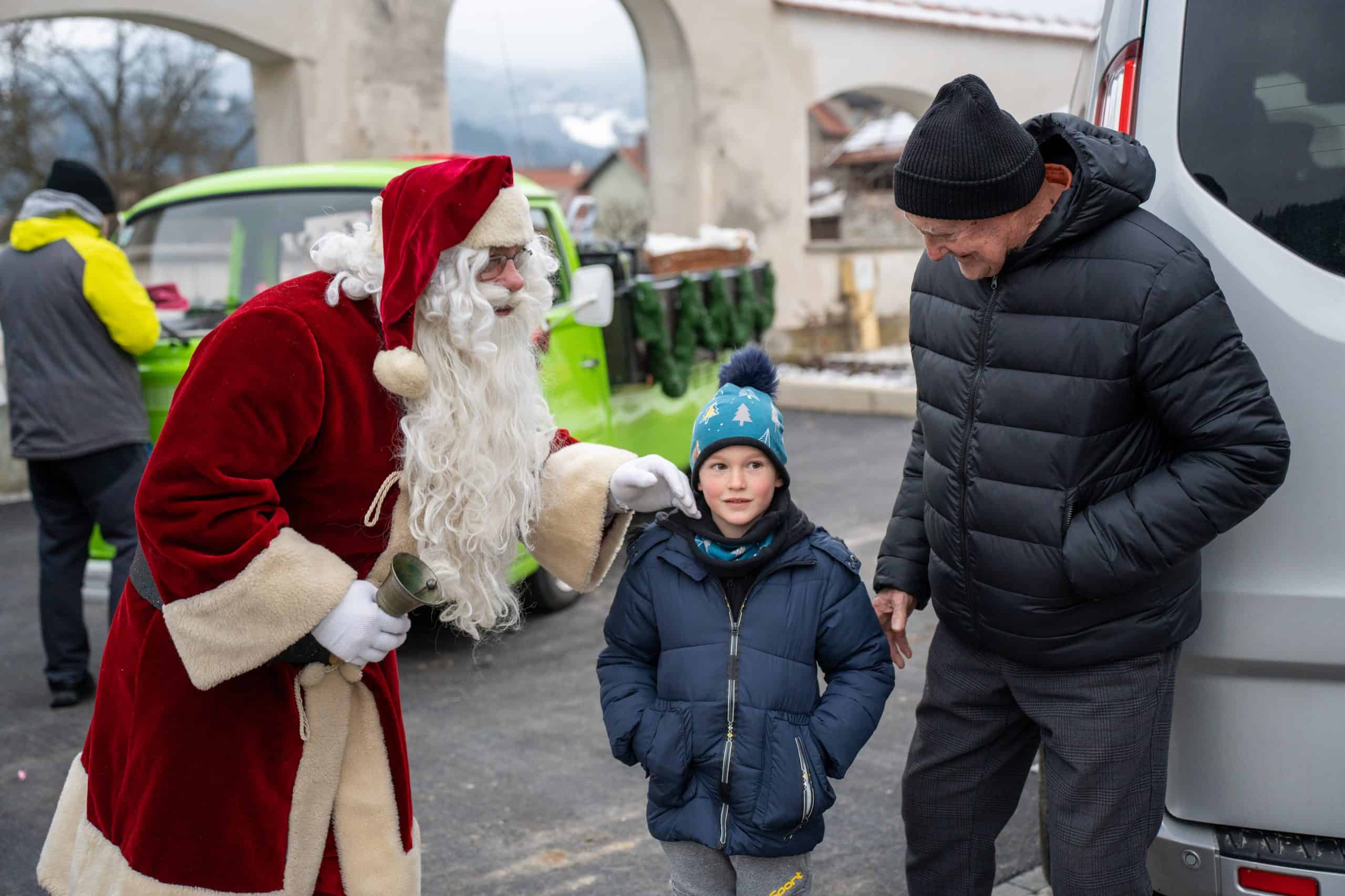 Velik obisk najmlajših s starši, dedki in babicami je seveda pokazatelj, da so nad prihodom Božička res navdušeni. Že drugo leto se po mestnih četrteh in vaških skupnostih prevaža s prav posebej iztopajočim vozilom, ki je udarno zelene barve.