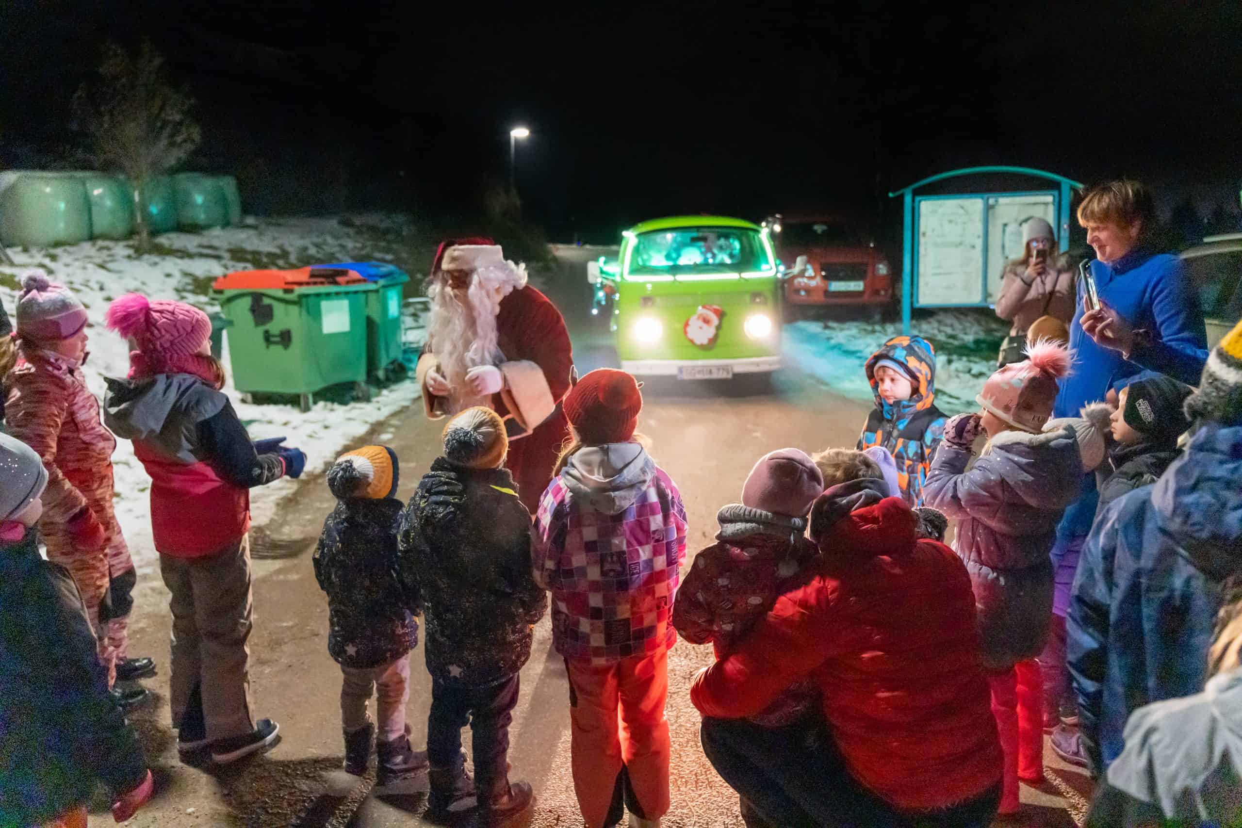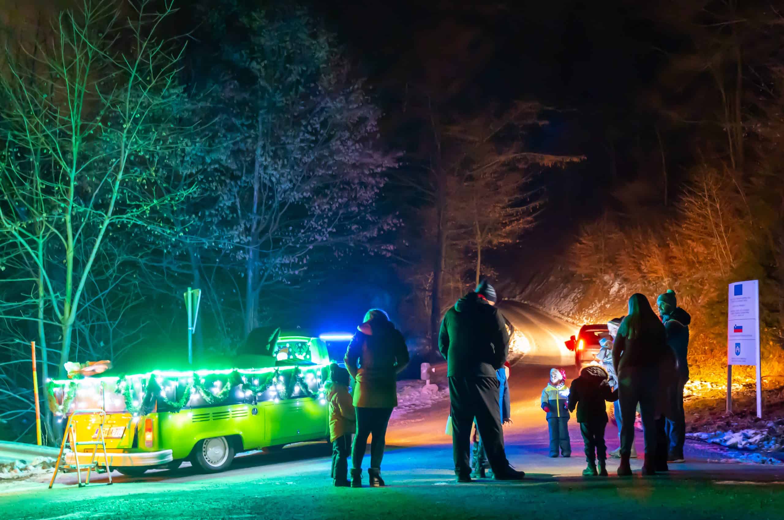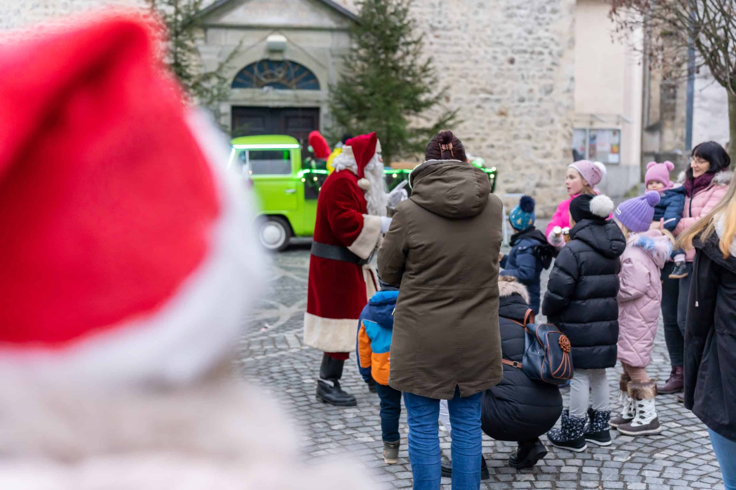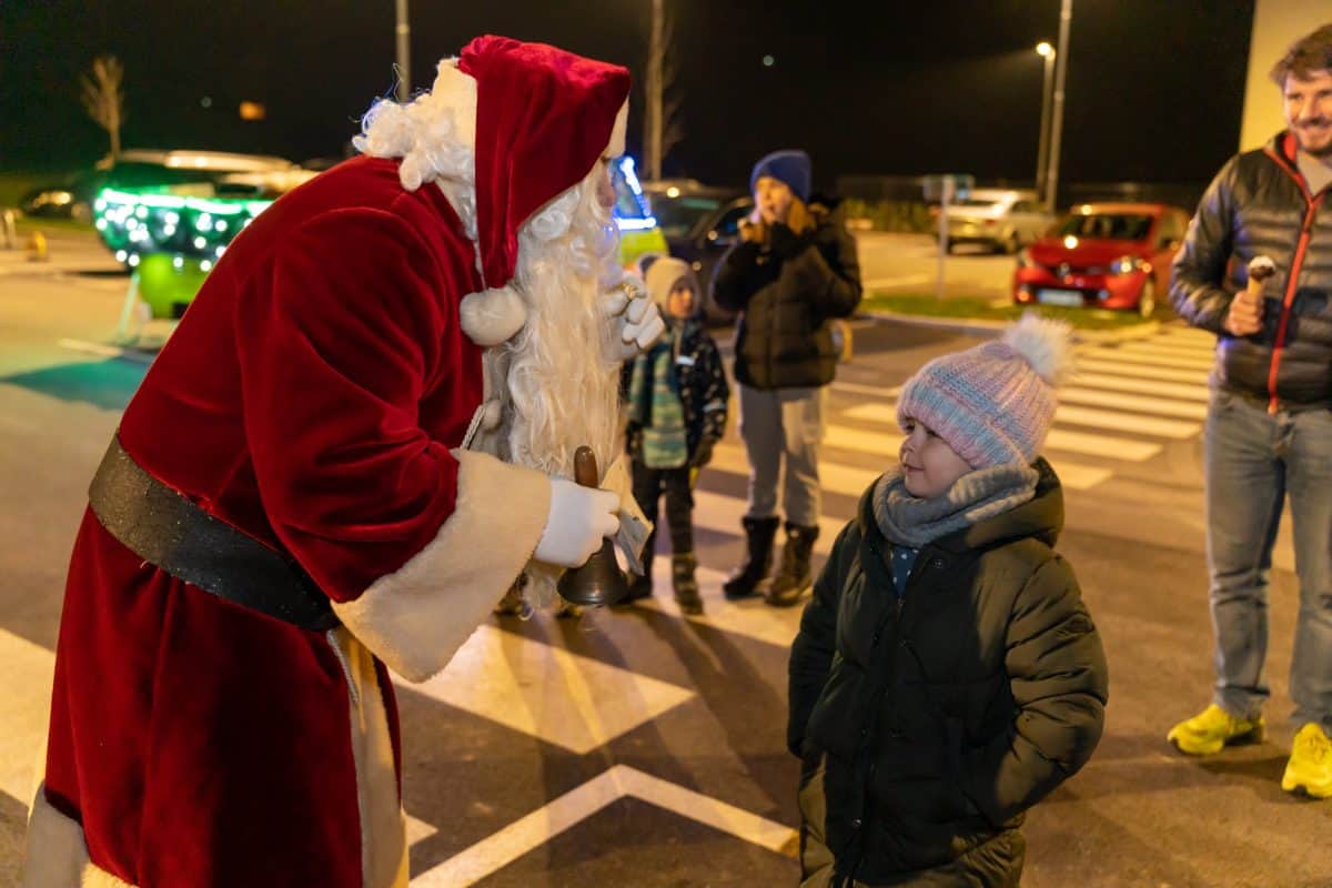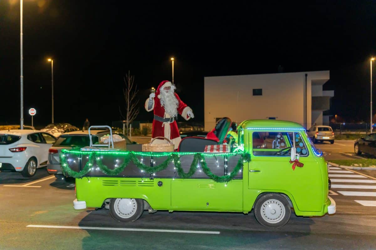 Velik obisk najmlajših s starši, dedki in babicami je seveda pokazatelj, da so nad prihodom Božička res navdušeni. Že drugo leto se po mestnih četrteh in vaških skupnostih prevaža s prav posebej iztopajočim vozilom, ki je udarno zelene barve.