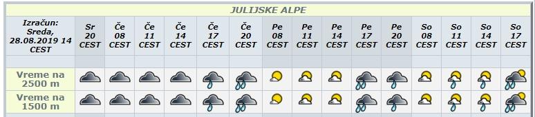 Tudi v soboto in nedeljo bodo predvsem popoldne in zvečer nastajale plohe in nevihte. Primernejši za obisk gora bodo zato jutra in dopoldnevi, a tudi takrat zaradi visoke vlažnosti zraka ne bo veliko lepih razgledov. Burja na Primorskem bo v soboto ponehala.
