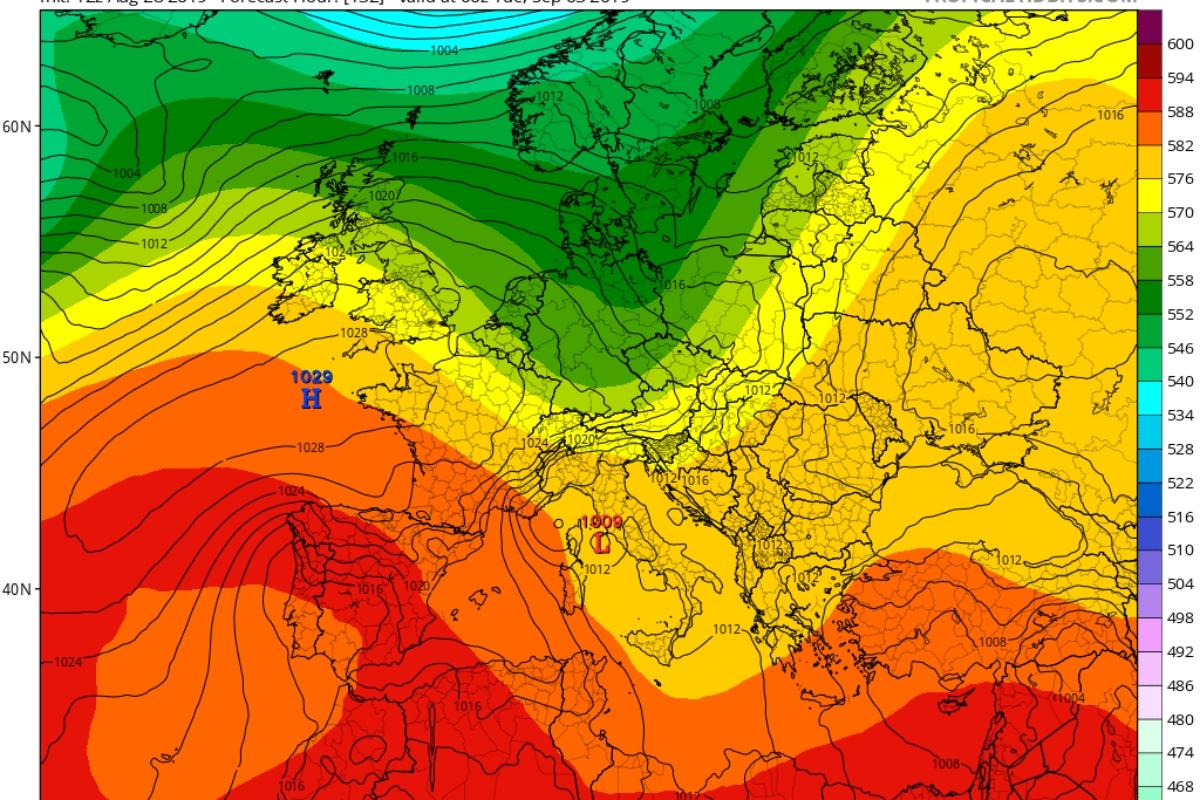 Od zelo toplega, poletnega vremena se bomo v začetku septembra morali posloviti. Praktično vsi izračuni meteoroloških modelov nakazujejo izrazit padec temperatur, ki jih bo predvidoma v noči na torek prinesla izrazita hladna fronta. Ob prihodu hladne fronte nad območje Alp bi, po večini izračunov meteoroloških modelov, nad severnim Jadranom nastalo sekundarno ciklonsko območje, ki bo poskrbelo za izdatnejšo količino padavin nad našimi kraji.