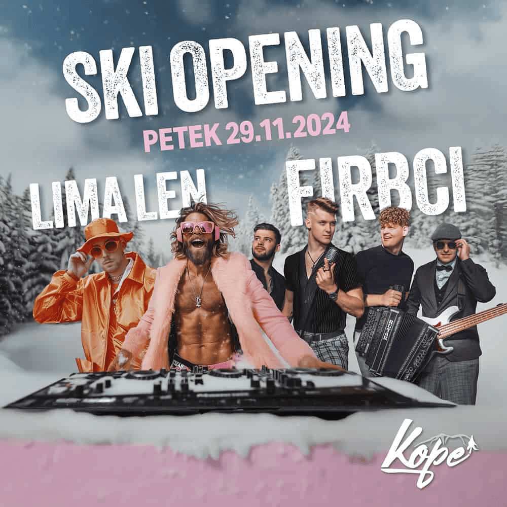 Že v petek, 29. novembra 2024, vas na Kopah pričakuje veliki Ski opening z neverjetno zabavo. Kar štiri vikende vas bodo na Kopah zabavali številni znani glasbeniki, ki bodo poskrbeli za veliko glasbenih ritmov in zabave.