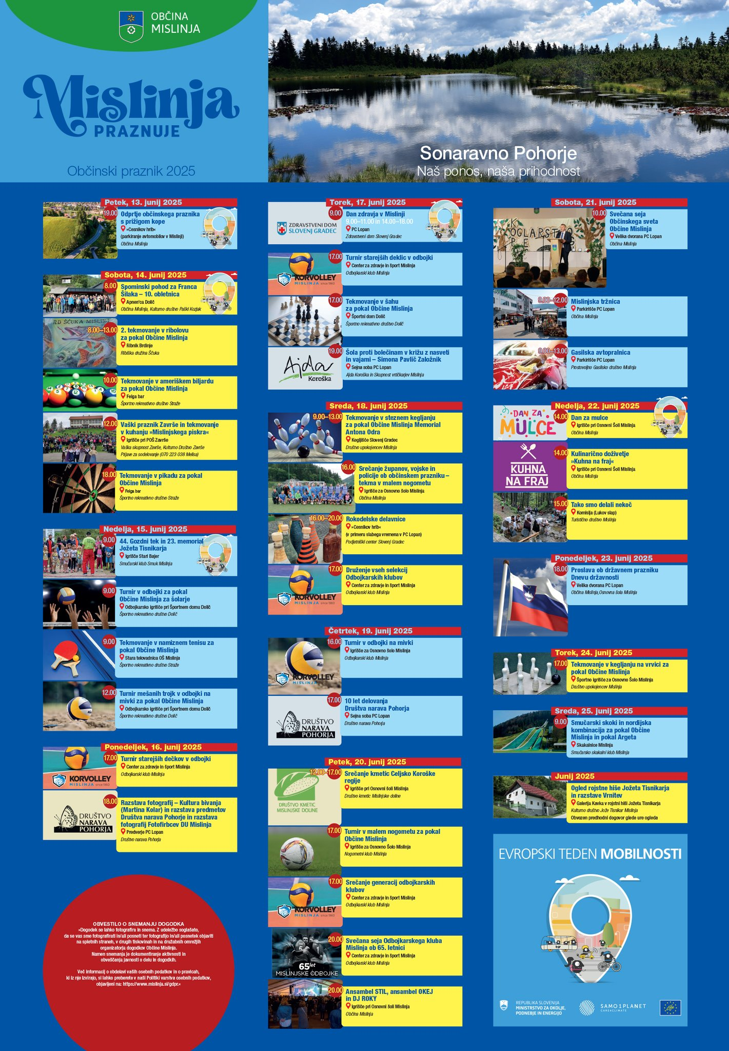 Pred vami je čas veselja, druženja in številnih dogodkov, ki bodo zaznamovali letošnji občinski praznik v Mislinji. V prihajajočih dneh vas bodo razveseljevali različni dogodki, od kulturnih in športnih prireditev do svečane seje in prijetnih družabnih srečanj.
