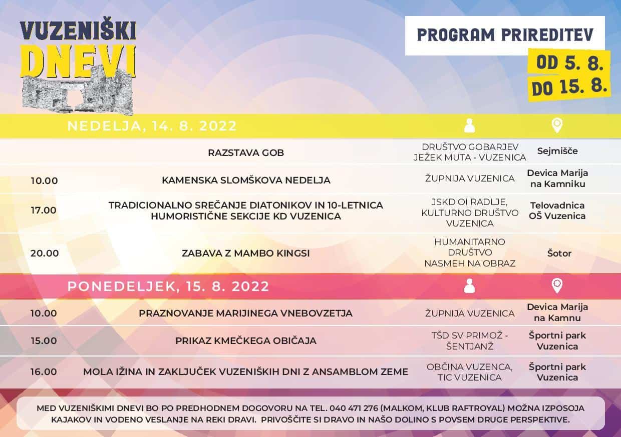 Prav tako pa bo danes v Vuzenici potekala kulinarična tržnica, na kateri boste lahko preizkusili preproste (a skrbno pripravljene) domače jedi, ki jih bodo za vas pripravila številna društva in skupine. Navdih za tržnico so sodelujoči dobili ob misli na tako imenovano »molo ižino« oziroma dopoldansko/popoldansko malico, značilno predvsem na kmetih. Vljudno ste vabljeni na pokušino domačih dobrot, ob spremljavi ansambla Zeme.