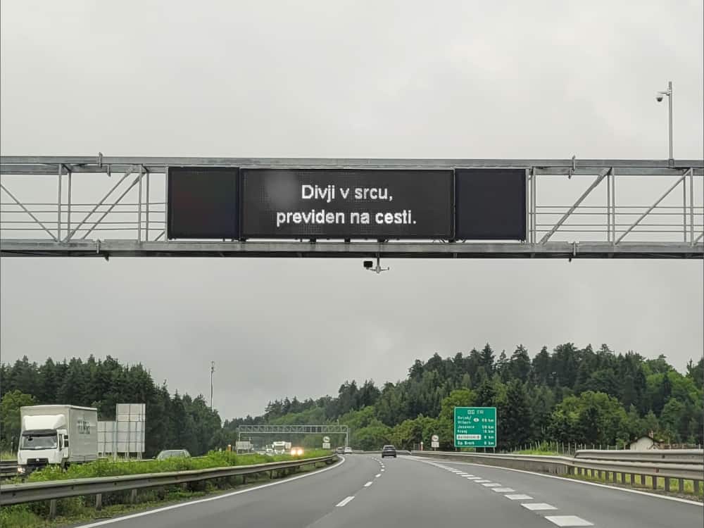 Objavo so pospremili s primeri napisov, ki jih lahko uporabniki slovenskih avtocest v teh dneh berejo na tablah za obveščanje: Zmeren gas seže v deveto vas, Divji v srcu, previden na cesti in Življenje je lepše, če ne hitiš.