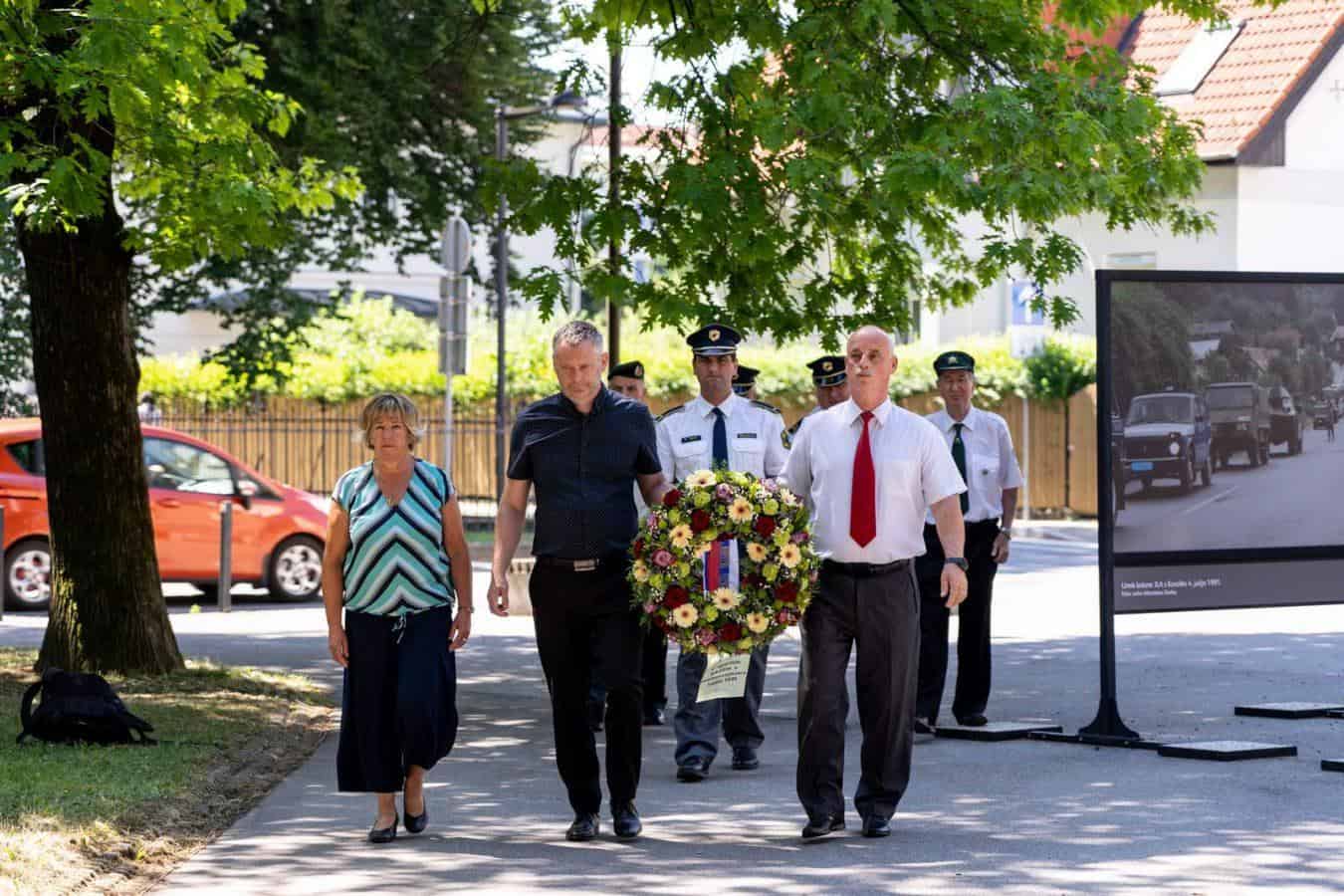 Venec so v imenu delegacije slovenjgraške mestne občine položili župan Tilen Klugler, podžupanja Martina Šisernik in podžupan dr. Peter Pungartnik. Venec pa so položile tudi Slovenska policija ter veteransko-domoljubne organizacije: Združenje Sever, Zveza veteranov vojne za Slovenijo in Združenje slovenskih častnikov.