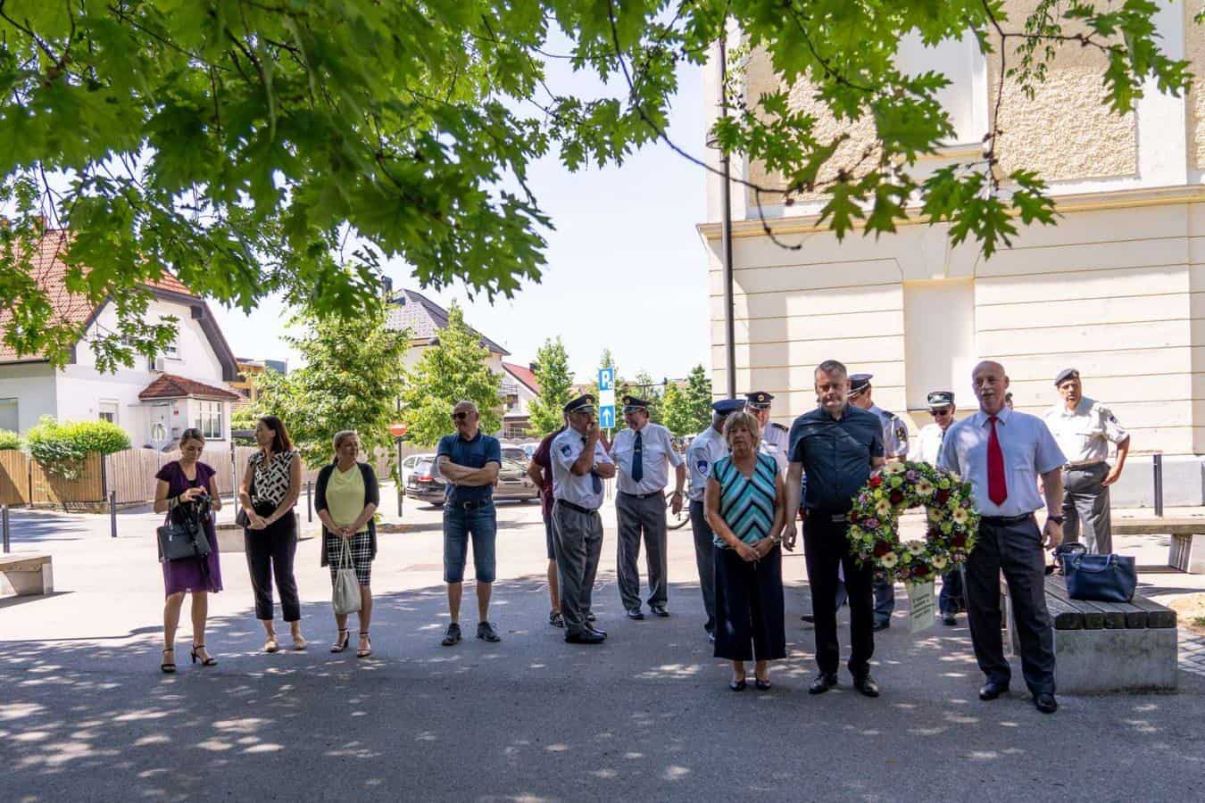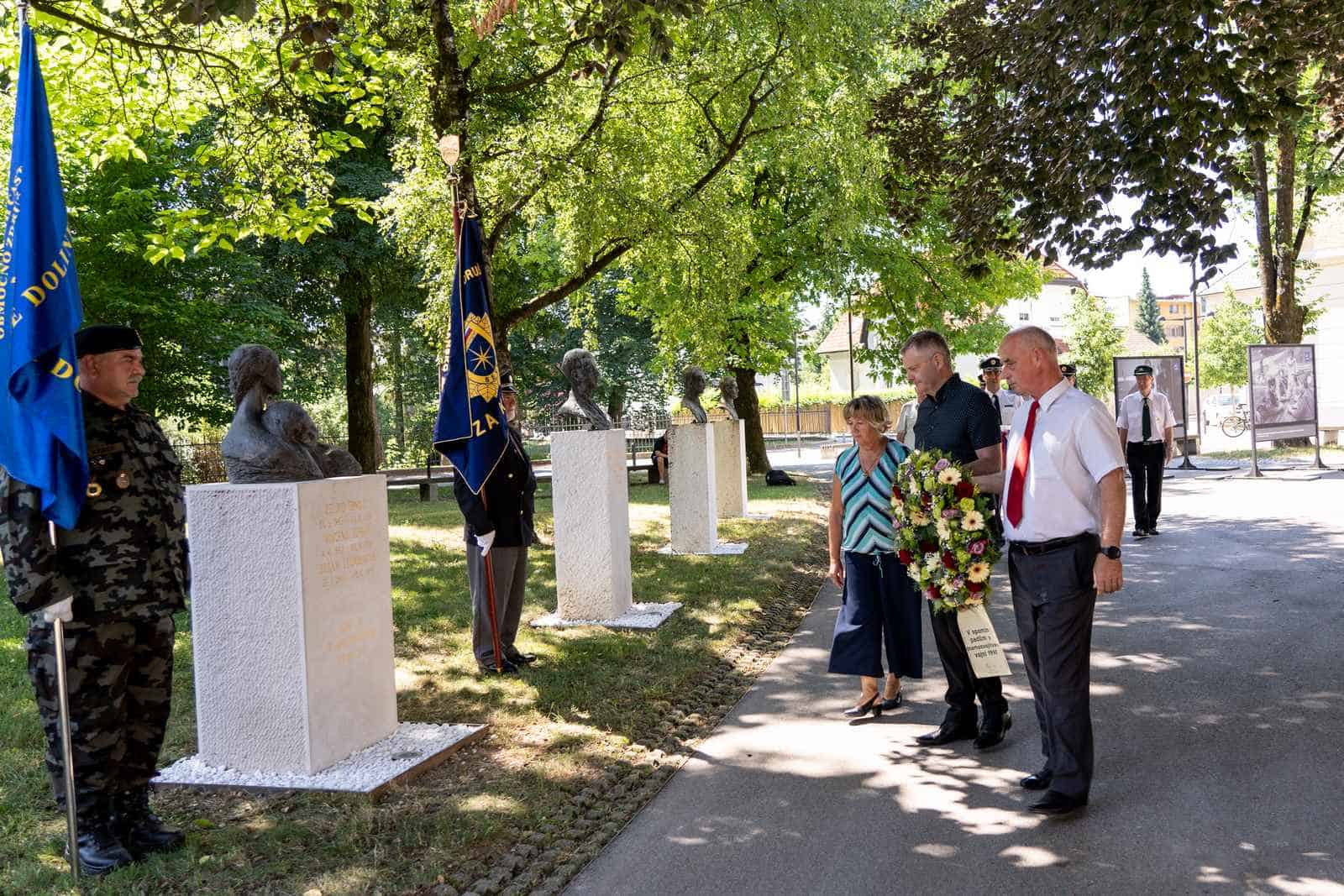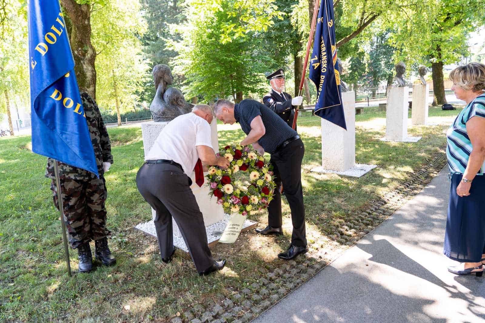 Venec so v imenu delegacije slovenjgraške mestne občine položili župan Tilen Klugler, podžupanja Martina Šisernik in podžupan dr. Peter Pungartnik. Venec pa so položile tudi Slovenska policija ter veteransko-domoljubne organizacije: Združenje Sever, Zveza veteranov vojne za Slovenijo in Združenje slovenskih častnikov.