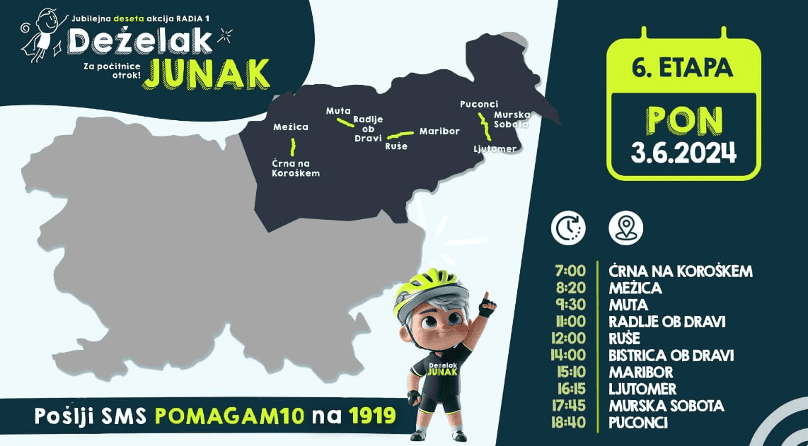 Deželak Junak pa se bo danes, 3. junija 2024, na 6 etapi ustavil na naslednjih lokacijah:
