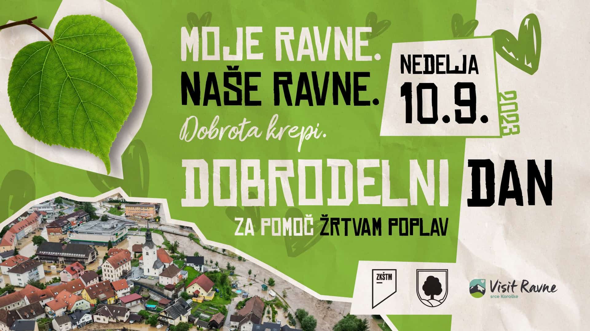 Zato bodo na Ravnah na Koroškem še enkrat več združili moči, stopili skupaj in pomagali tistim, ki so v strašnih poplavah utrpeli največjo škodo. V nedeljo, 10. septembra 2023, bo v ta namen potekal Dobrodelni dan s sloganom ''Moje Ravne. Naše Ravne'', dogodek, ki bo širil sporočilo ljubezni in podpore vsem žrtvam avgustovskih poplav, saj nas vse združuje prepričanje, da smo kot skupnost močnejši.