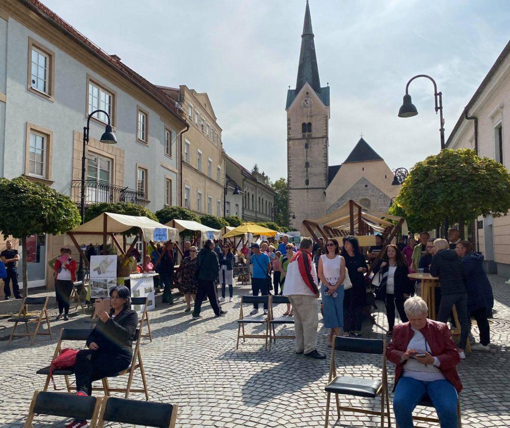 V mestnem jedru pa so se ustavili in za kratek čas pridružili dogajanju tudi udeleženci šestega kolesarjenja po bodoči trasi hitre ceste na Koroško, med Šentrupertom in Ravnami na Koroškem, ki ga je letos zadnjič pripravila Mladinska iniciativa za 3. razvojno os, o čemer si lahko več preberete TUKAJ.