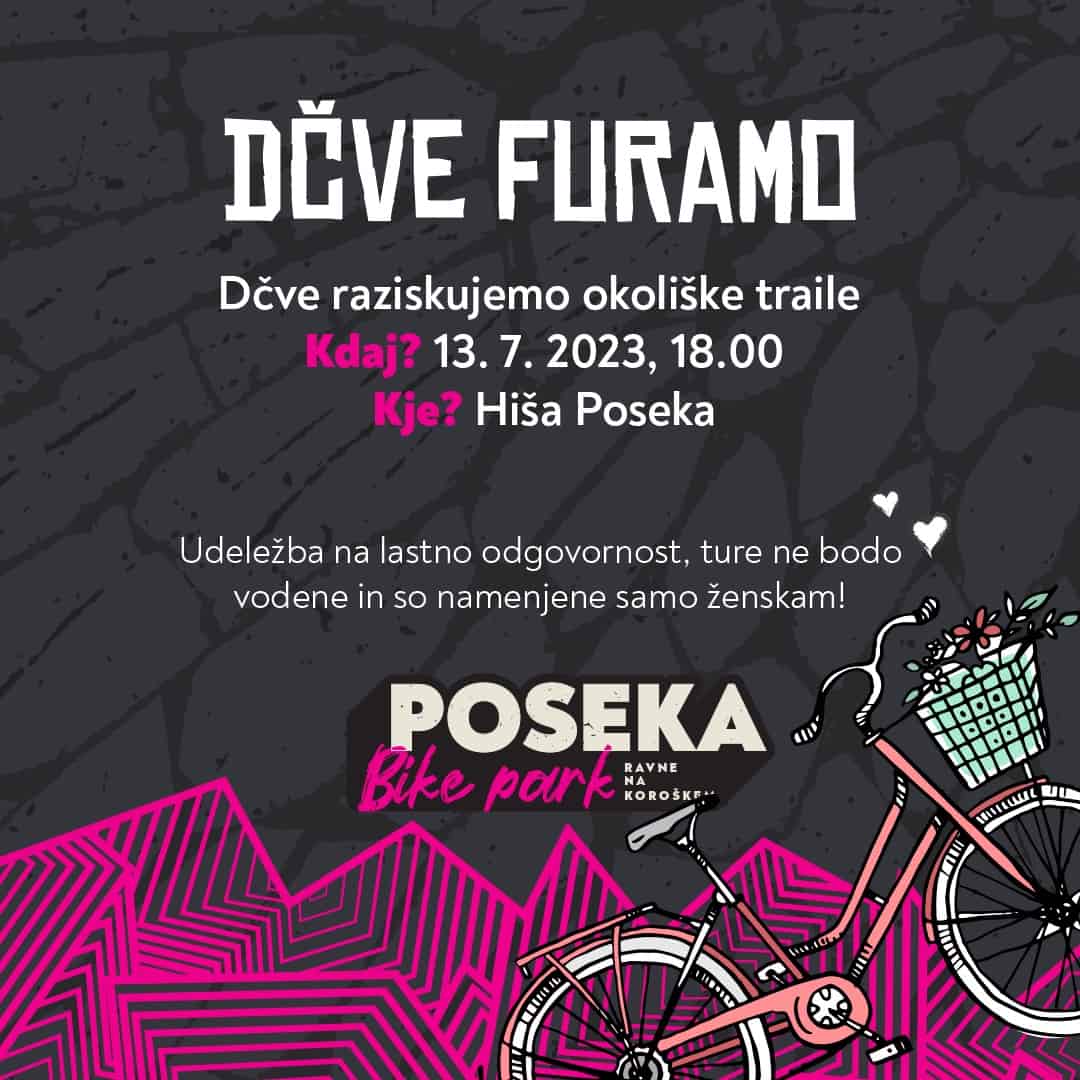 Dogodek Dčve furamo, predviden za jutri, 13. julija 2023, in namenjen samo ženskam, bo zaradi napovedi močnega deževja prestavljen na kasnejši datum. Tako se bodo dekleta zbrala v ponedeljek, 17. julija 2023, pred Hišo Poseka ob 18. uri in se odpravila na turo po okoliških trailih.