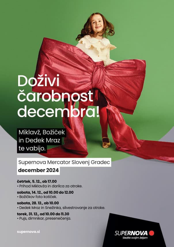 Pridružite se prazničnim dogodkom v Supernovi Slovenj Gradec in doživite čarobnost decembrskih dni! Naj vam ta praznični čas prinese nepozabne trenutke, srečo in radost v krogu vaših najdražjih.