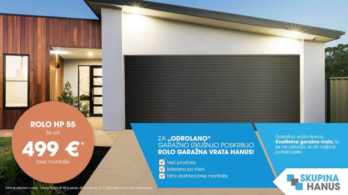 Vsak si zasluži kvalitetna, varna in stilsko oblikovana garažna vrata, ki bodo garažo spremenila v najbolj kul prostor v hiši. Zato do 31. 3. izkoristite dve posebni ponudbi. Prva, zajema posebno ponudbo rolo garažnih vrat ROLO HP 55, ki jih lahko naročite že od 499 €* brez montaže in od 699 €* z montažo. Druga ponudba, pa zajema 30 % popust na vsa preostala rolo garažna vrata!