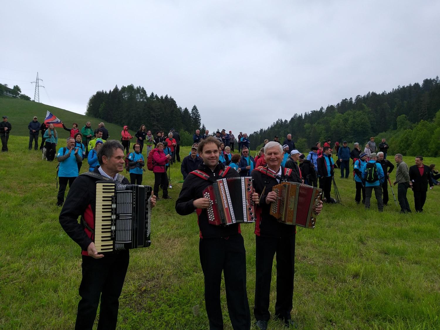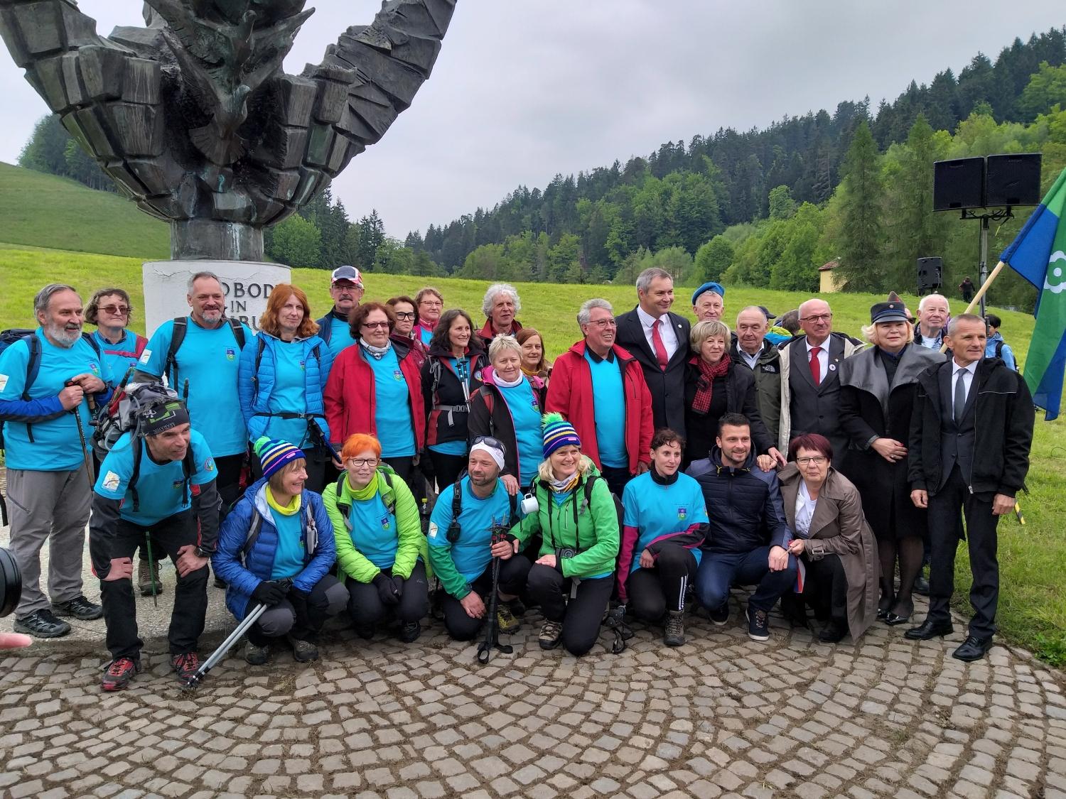 V namen spomina na zadnjo bitko na evropskih tleh sta Planinsko društvo Mislinja in Združenje borcev za vrednote NOB Mislinjske doline organizirala 5. spominski pohod, ki se ga je udeležilo 27 pohodnikov in različnih koroških krajev. Na pot so se podali včeraj v večernih urah in so po približno desetih urah prispeli danes zjutraj na Poljano, kjer so se udeležili osrednje proslave ob 74-letnici zadnjih bojev 2. svetovne vojne na Evropskih tleh. Pridružili so se jim tudi pohodniki 27. spominskega pohoda Svobodi in miru KS Holmec, na prizorišče pa so oboje pospremili člani Harmonikarskega orkestra KD Prežihov Voranc Ravne na Koroškem.