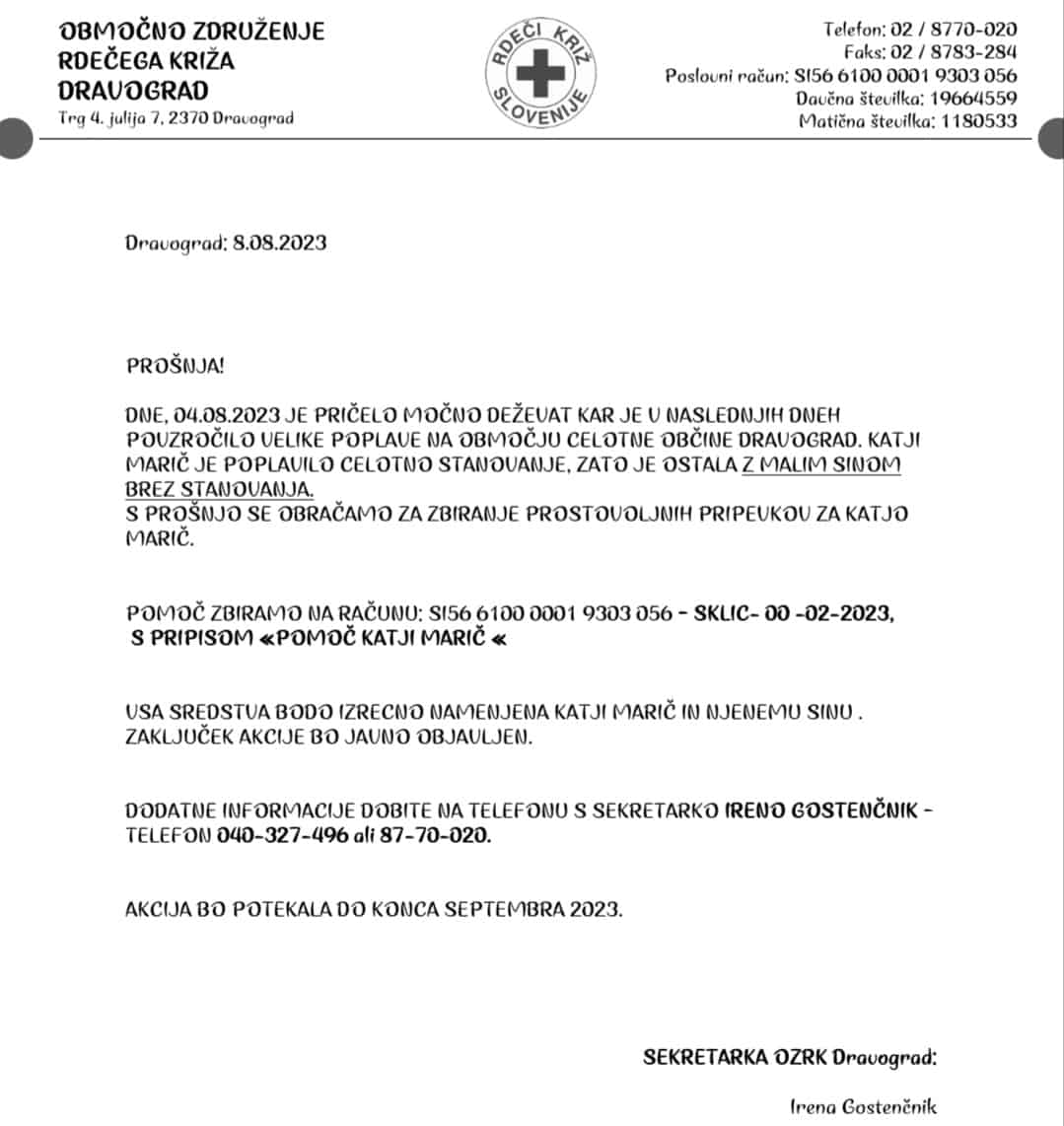 Preko Rdečega križa Dravograd so zdaj zanjo sprožili akcijo zbiranja sredstev. Zaključek le te pa bo javno objavljen.