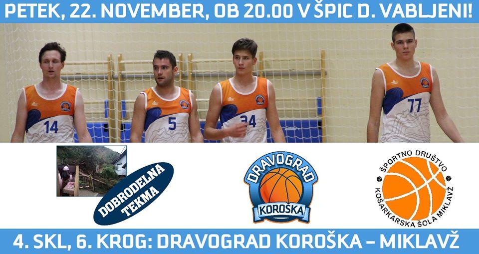V Špic D v Dravogradu se bodo tokrat na igrišču potili in vas navduševali domači člani Košarkarskega kluba Dravograd. V goste pa prihaja ekipa iz Miklavža. Fantje obljubljajo, da bodo storili vse, da zmaga ostane doma, hkrati pa bodo tudi dobrodelni.