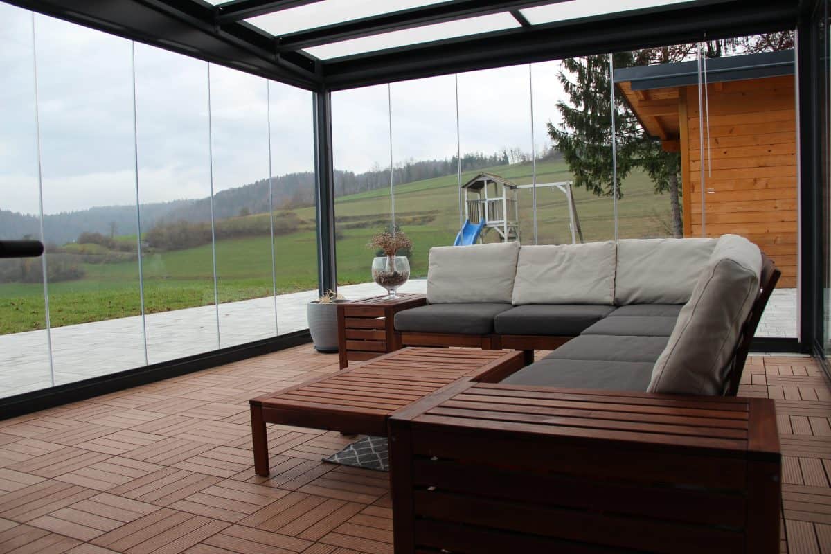 - Večtirna zasteklitev terase pa sicer omogoča pomik steklenih lamel po več tirnicah, vendar terase v tem primeru ni možno v celoti odpreti, zaprto ostane vsaj za širino enega stekla.