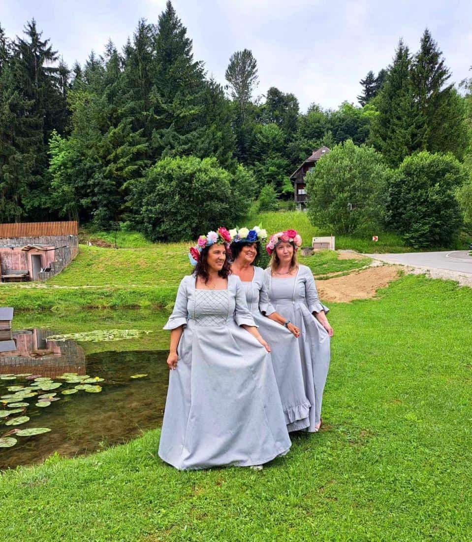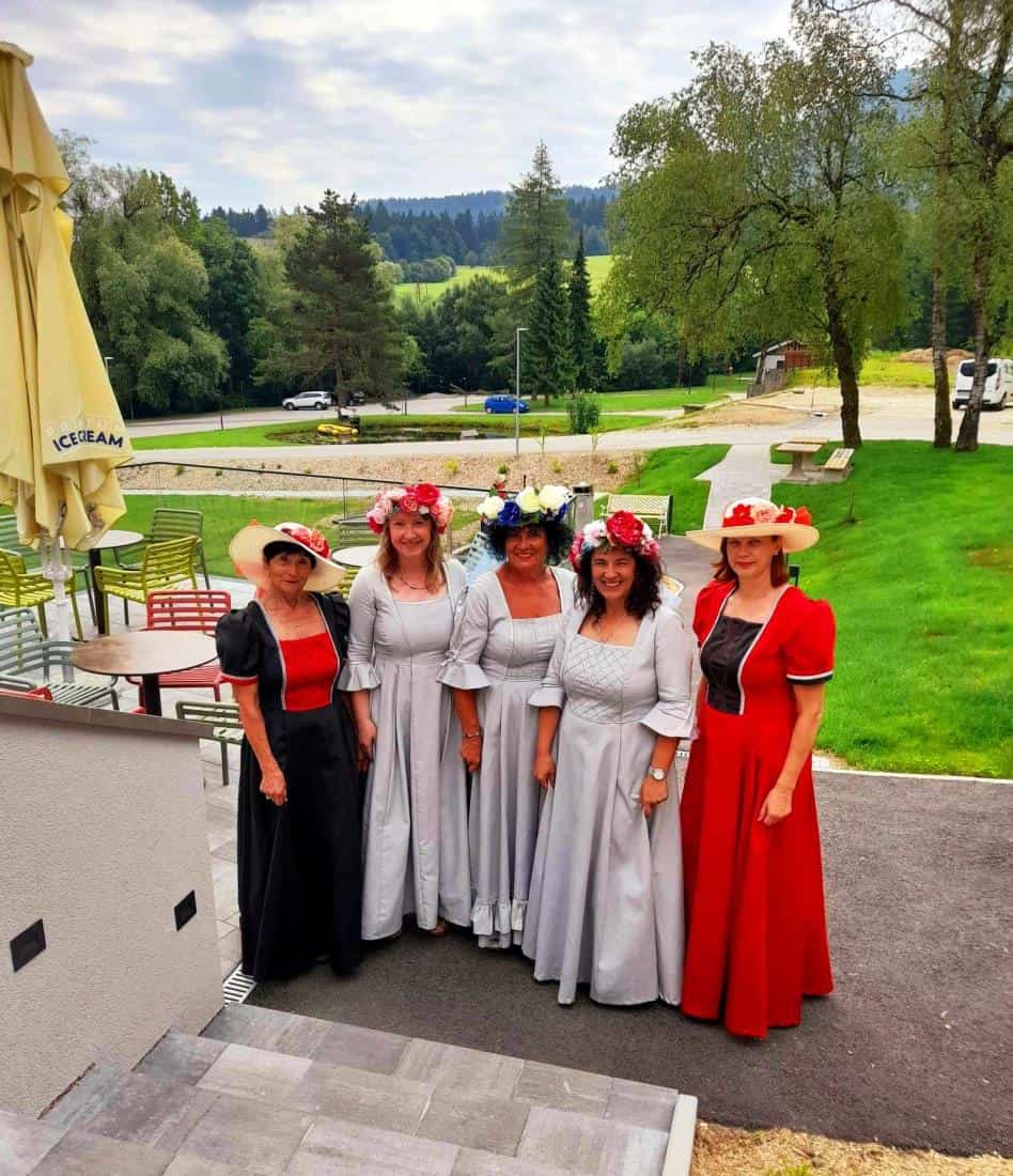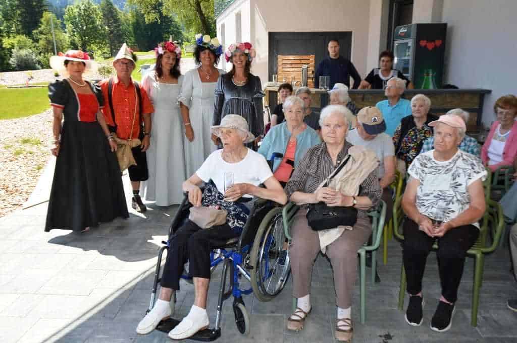 V teh dneh so jim za čudovito in prisrčno predstavitev bili najbolj hvaležni starostniki iz Doma starejših na Fari (Prevalje), saj jih je na Rimskem vrelcu pričakala pravljično oblečena skupina vse od vodnih vil, povodnega moža, gozdnega škrata in lepih grajskih dam do spletične, … vse pa je bilo povezano v zanimiv in pester program.