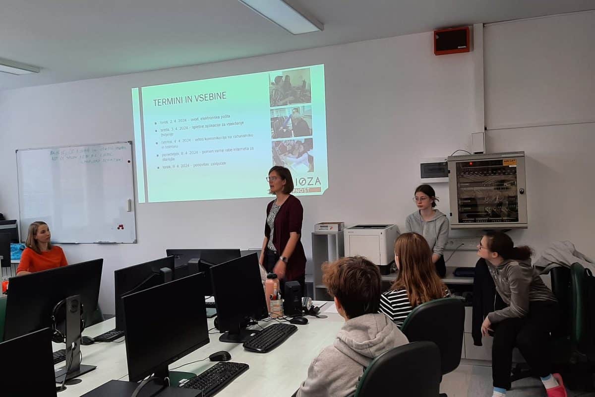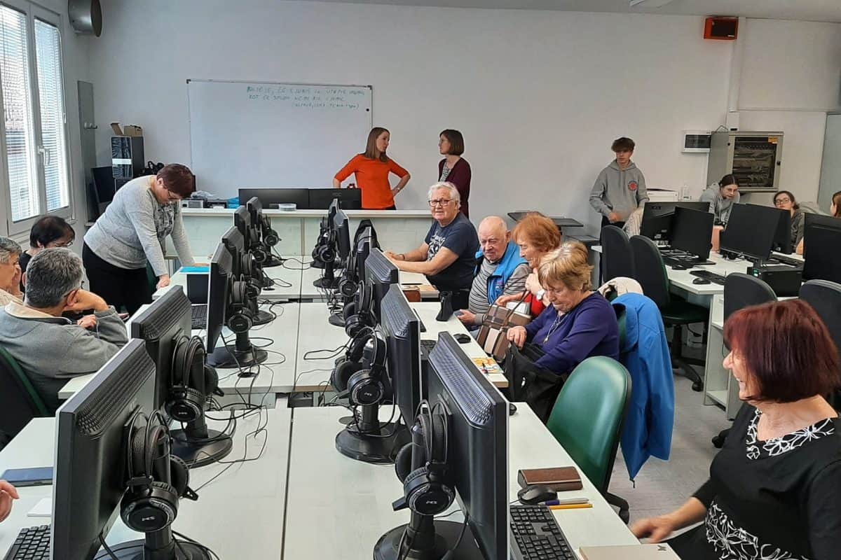 To je odlično medgeneracijsko sodelovanje z namenom pridobivanja znanja digitalnih veščin pri starejših občanih Občine Dravograd. Tečaj vodi profesorica Lara s šestimi učenci OŠ Šentjanž.