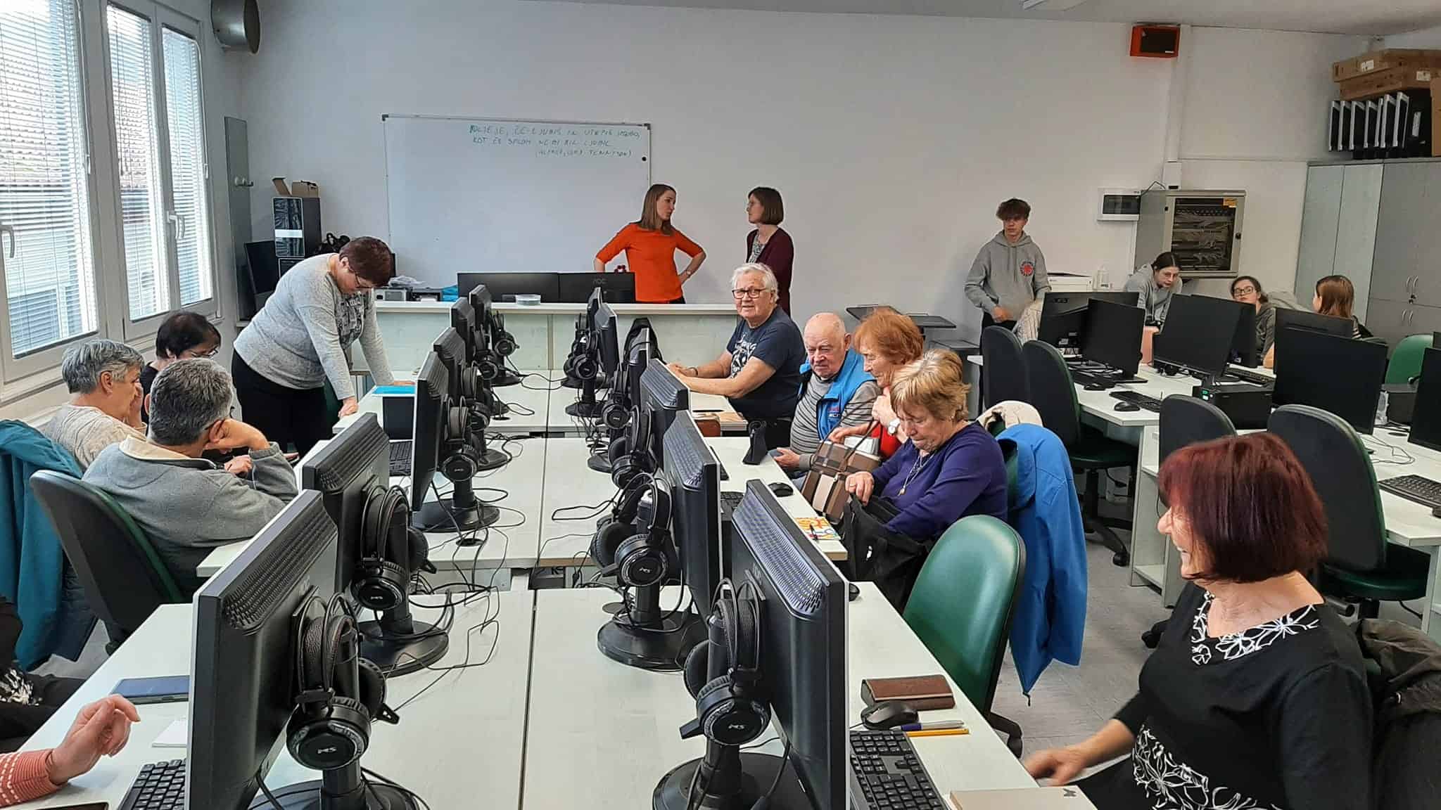 To je odlično medgeneracijsko sodelovanje z namenom pridobivanja znanja digitalnih veščin pri starejših občanih Občine Dravograd. Tečaj vodi profesorica Lara s šestimi učenci OŠ Šentjanž.