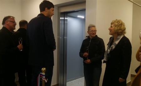 Z gradnjo dvigala so pričeli lansko poletje, potekala pa je v sklopu 1. faze prenove dvorca, ki je kulturni spomenik, zato so se dela izvajala v skladu s kulturnovarstvenimi pogoji in pod nadzorom Zavoda za varstvo kulturne dediščine Slovenije. Izvajalec gradbenih del je bilo podjetje GIIP d.o.o. z Raven na Koroškem, ki je bil izbran z javnim razpisom. V dobrega pol leta so tako zgradili novo dvigalo in armiranobetonsko servisno stopnišče v skupni vrednosti 130.000 €, s tem pa bodo le ne omogočili dostop invalidom v vse etaže dvorca, pač pa tudi olajšali zaposlenim prenašanje opreme ter funkcionalno ločili protokolarne prostore od prostorov, ki so v dnevni uporabi. Novo stopnišče in dvigalo omogoča tudi dostop v mansardo, ki ga prej ni bilo. Dvigalo je namenjeno za hkraten prevoz 8 oseb oz. 625kg, kabina je široka 120 cm in globoka 125 cm, hitrost dvigala pa je 1m/s.