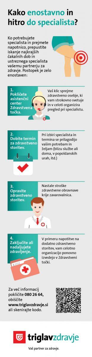 Ne dovolite, da vam v primeru poškodbe ali bolezni dodatne skrbi povzroča še predolgo čakanje na specialista. Zagotovite si, da takrat za vas poskrbi vaš partner za zdravje, zato obiščite spletno stran www.triglavzdravje.si in si pravočasno uredite zavarovanje, ki vam najbolj ustreza: Specialisti, Specialisti+ ali Specialisti Nezgoda.