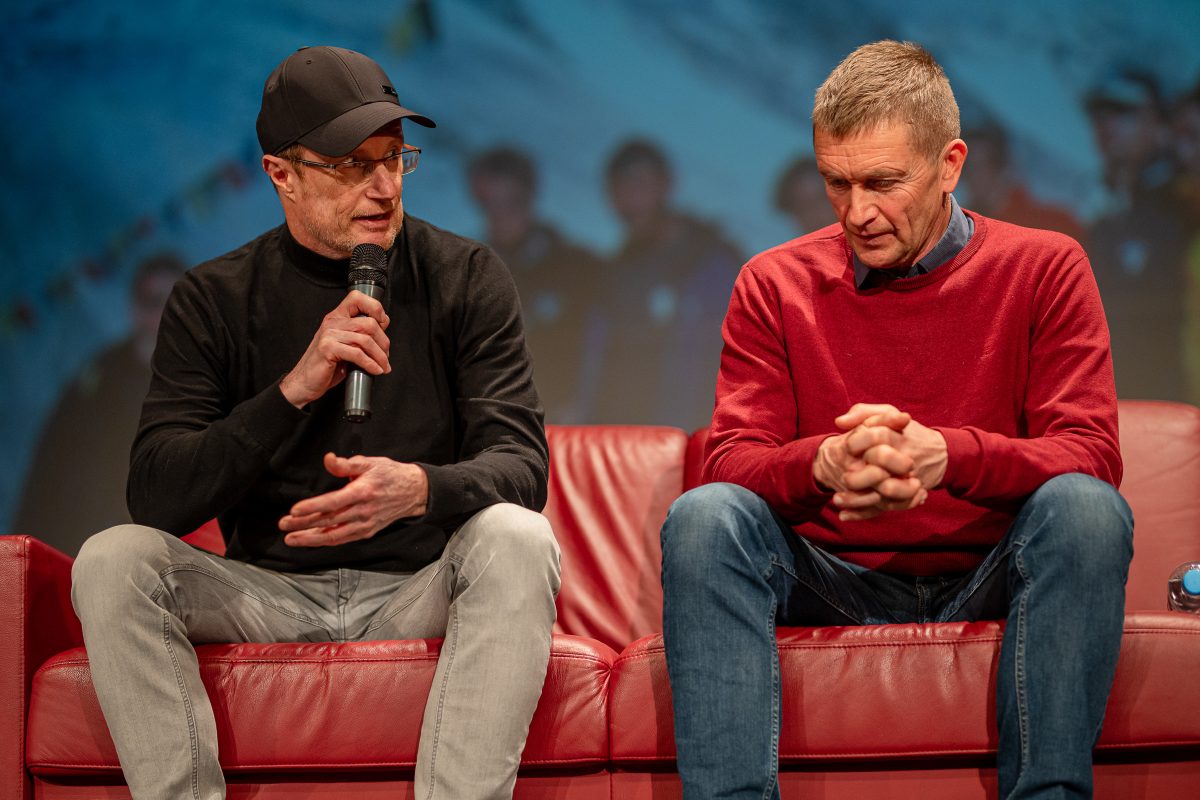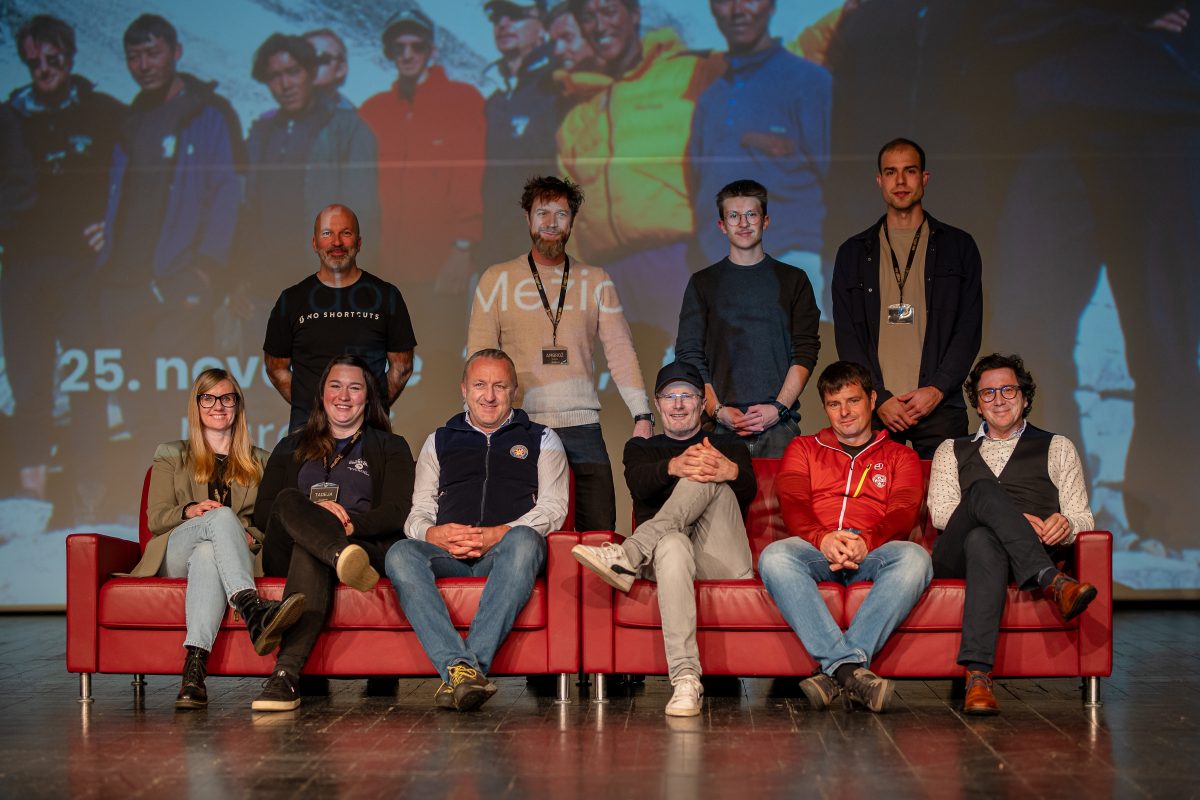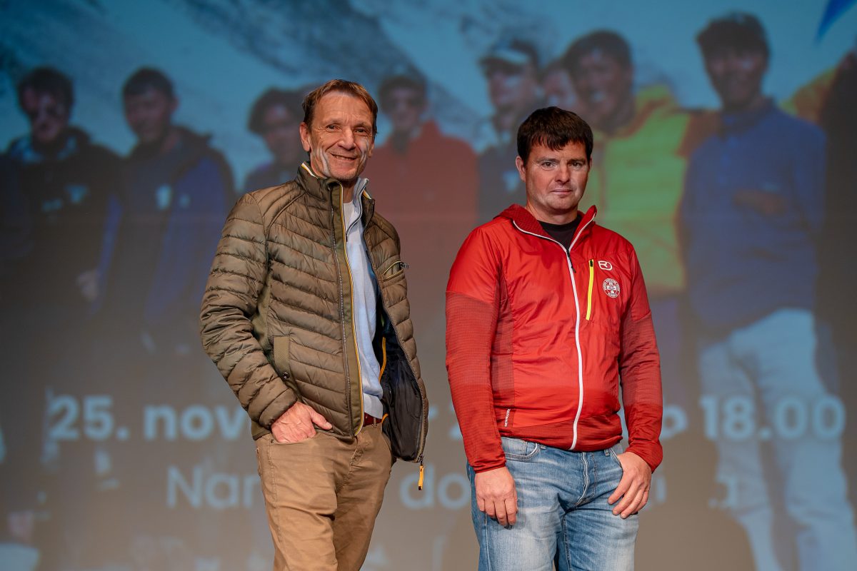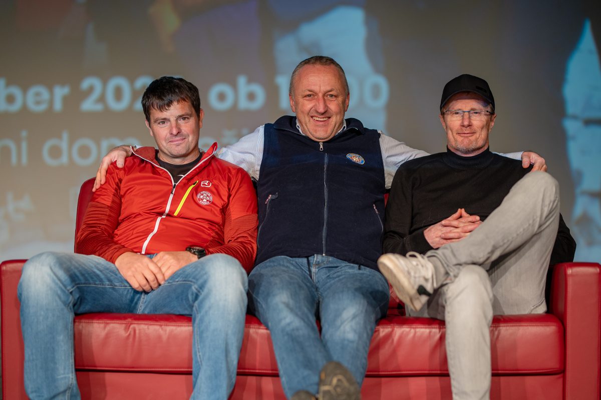 V nabito polni Veliki dvorani Narodnega doma Mežica so v pogovoru, ki ga je vodil Peter Mikša, spomine na to izjemno odpravo obujali Matej Flis, Tadej Golob, dr. Jurij Gorjanc in Drejc Karničar, brat pokojnega Dava Karničarja.
