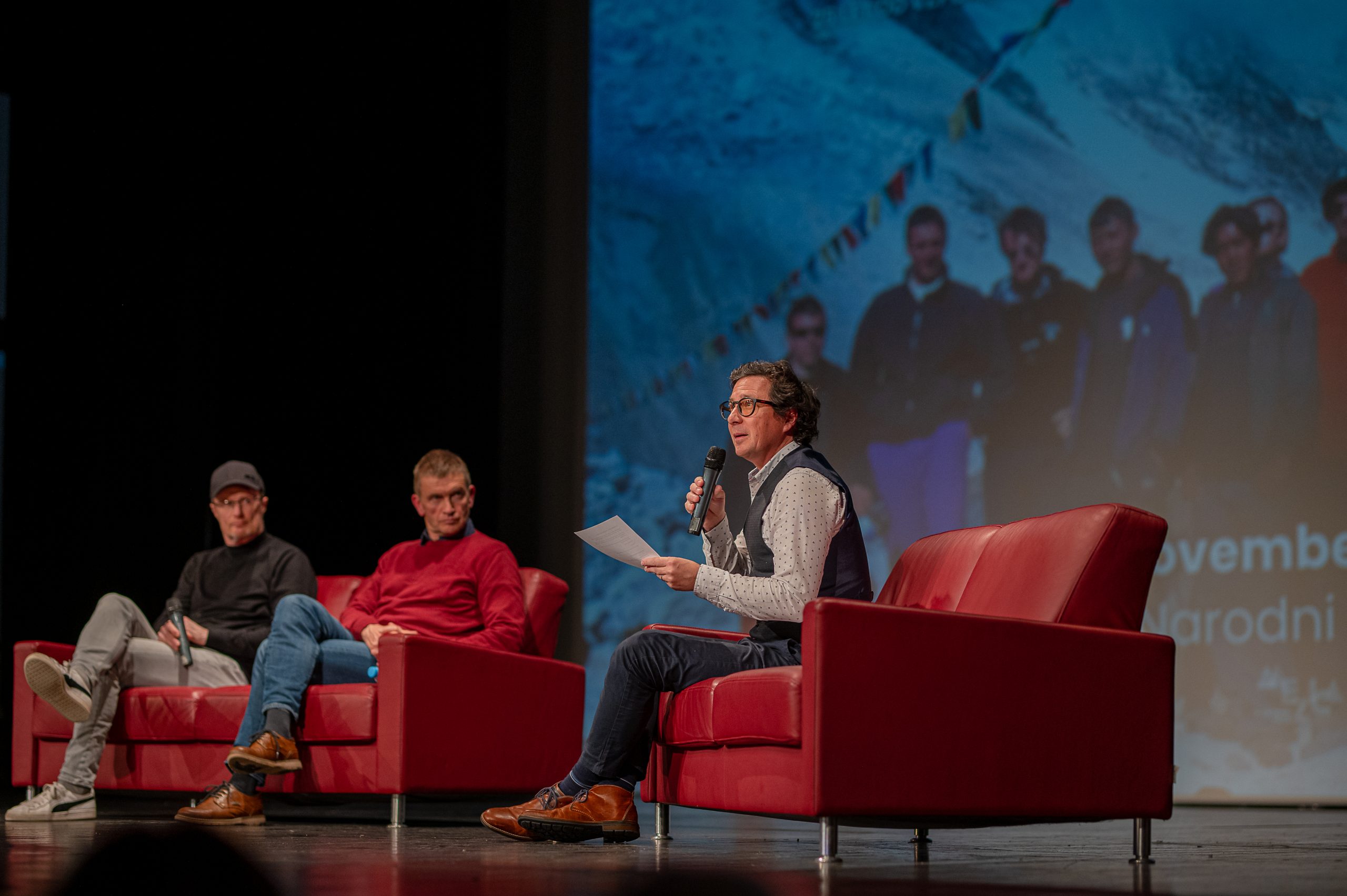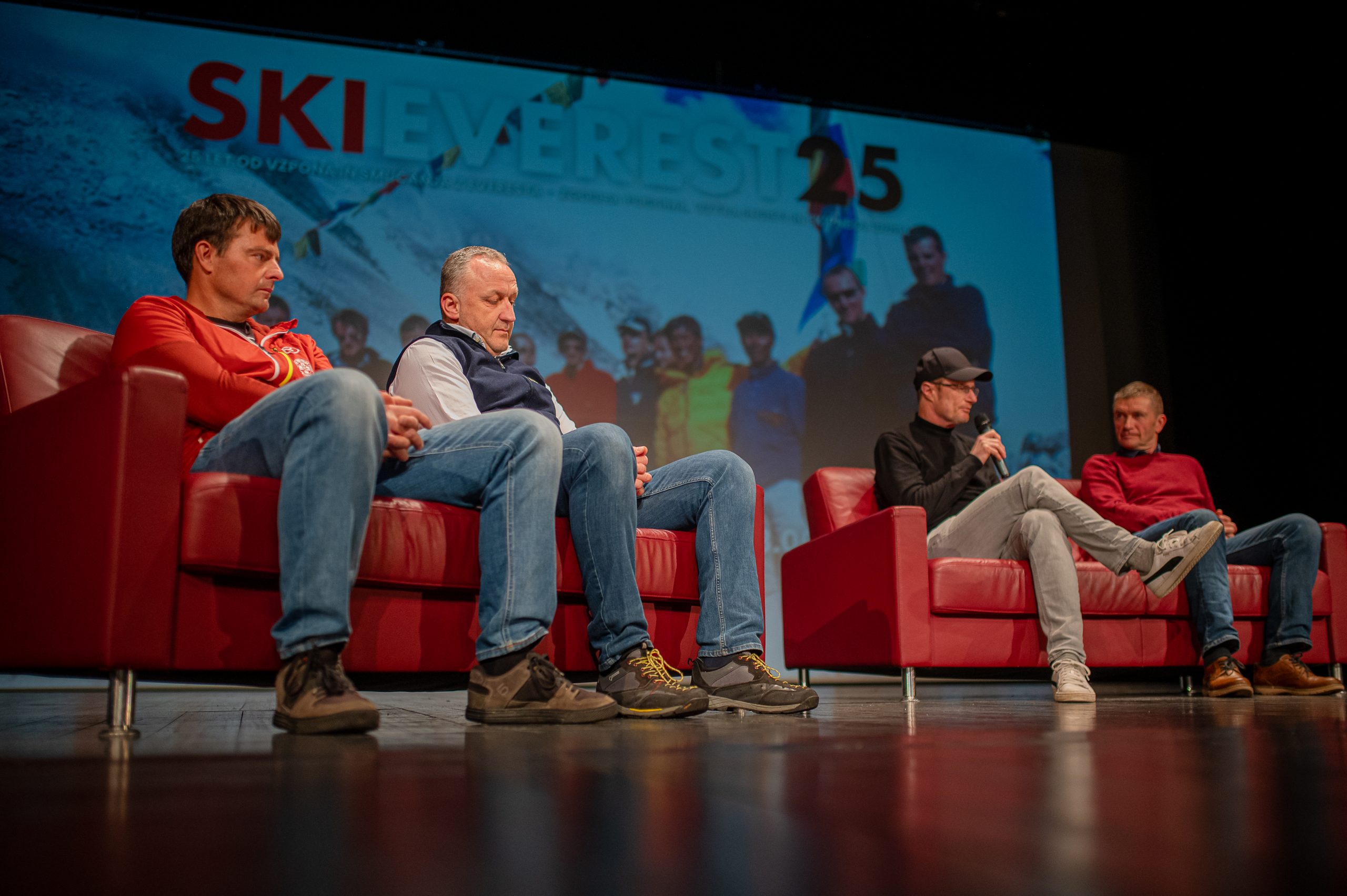 V nabito polni Veliki dvorani Narodnega doma Mežica so v pogovoru, ki ga je vodil Peter Mikša, spomine na to izjemno odpravo obujali Matej Flis, Tadej Golob, dr. Jurij Gorjanc in Drejc Karničar, brat pokojnega Dava Karničarja.