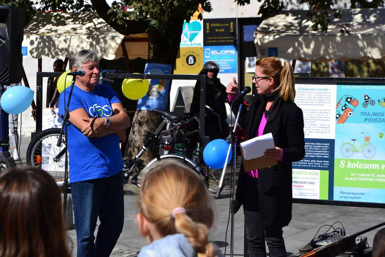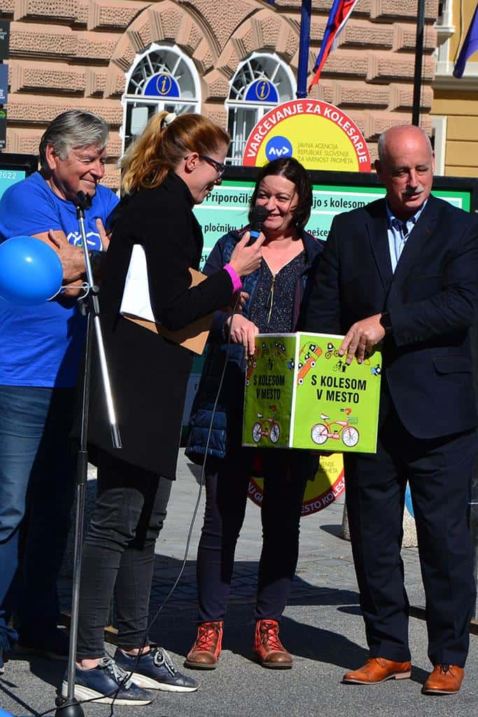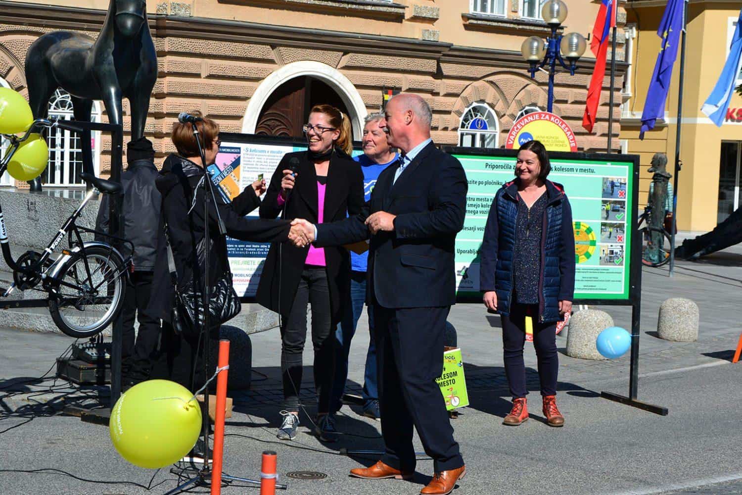 Ob 11.00 je epilog doživel projekt "S kolesom v mesto", ki na trajnostni način življenja opozarja že skoraj desetletje in v sklopu katerega je podžupan Mestne občine Slovenj Gradec gospod Peter Pungartnik podelil glavno nagrado.