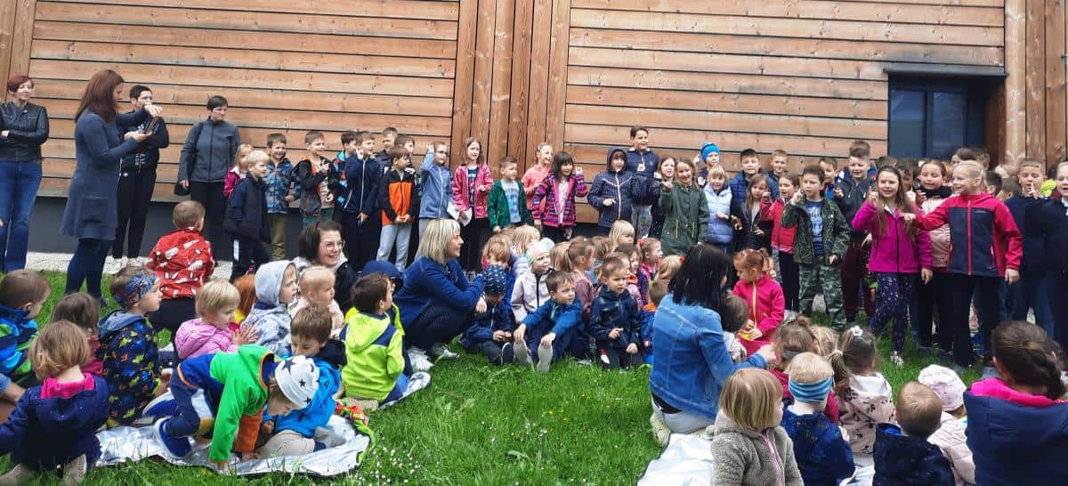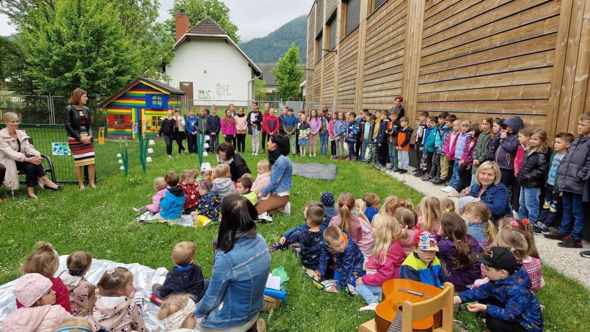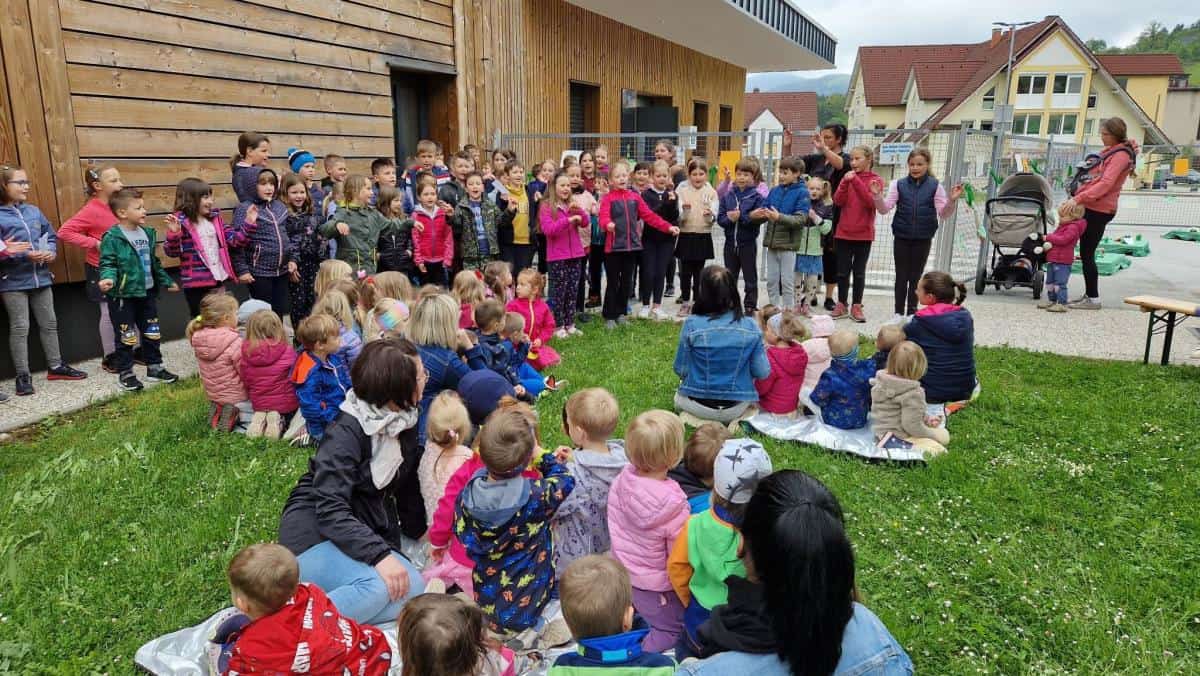 Levi Devžej se imenuje enota Vrtca Ravne in tam, na njihovem dvorišču je potekalo srečanje in otroški uvod v Festival solzic.