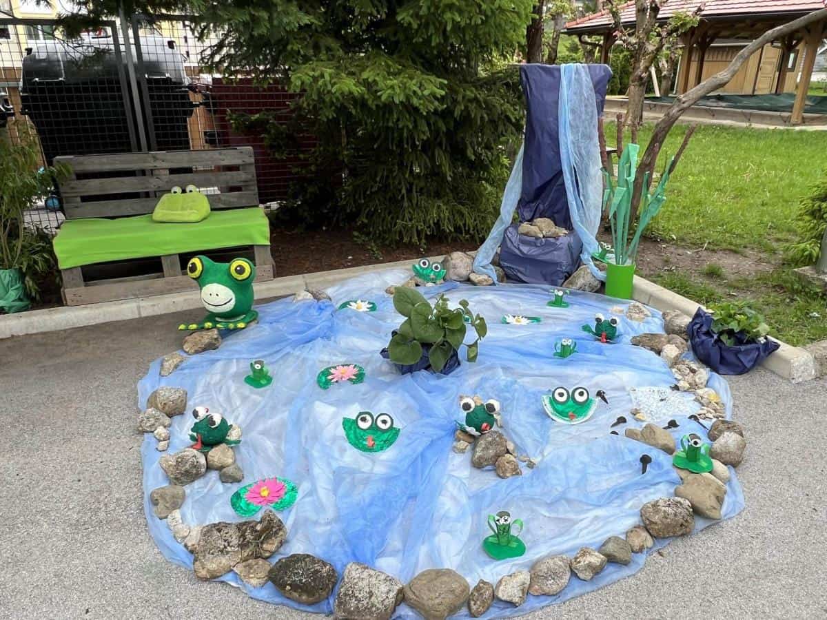 Plesali so žabji ples, spoznali razvojni krog žabic, prisluhnili recitacijam in pesmicam o žabicah. Predvsem pa so se imeli lepo v družbi najmlajših in nekoliko starejših otrok.