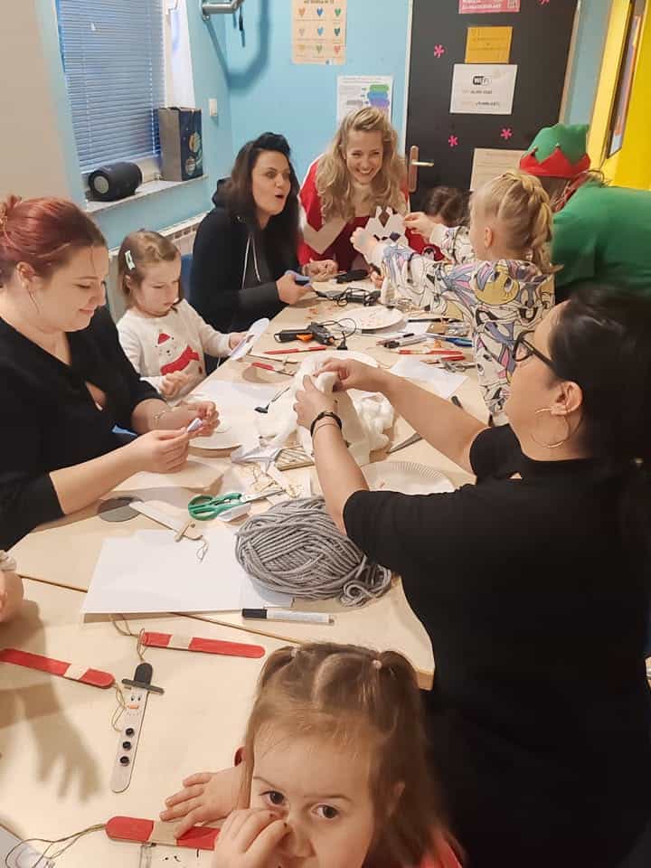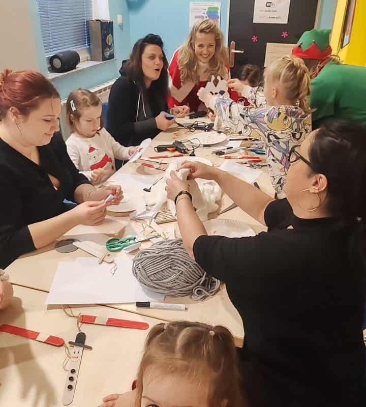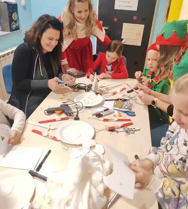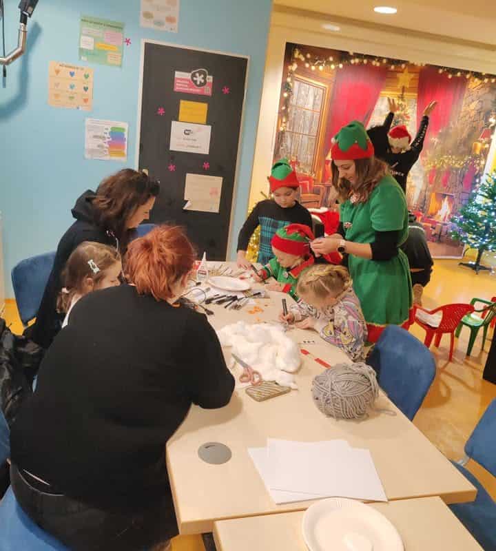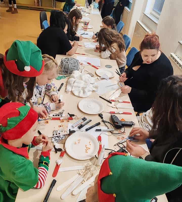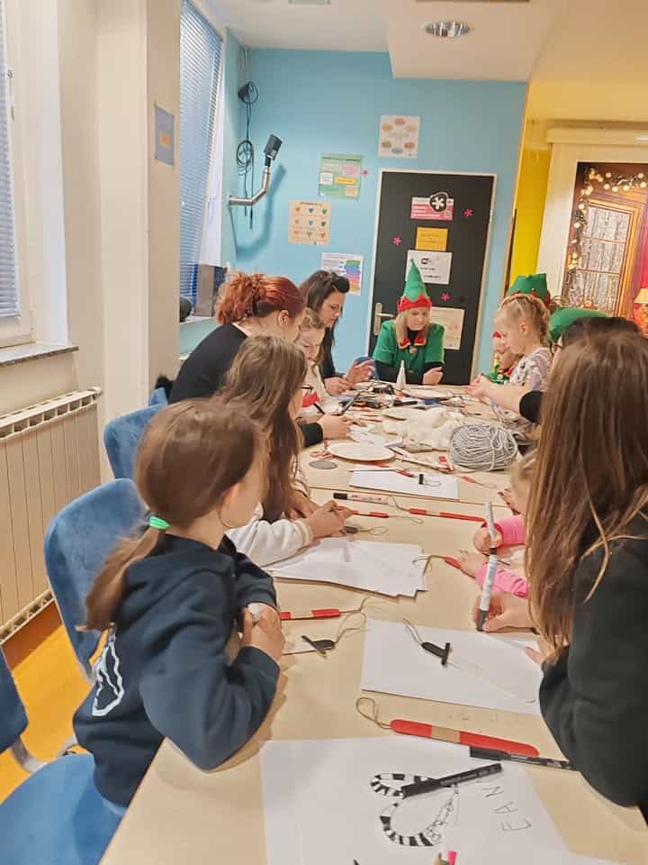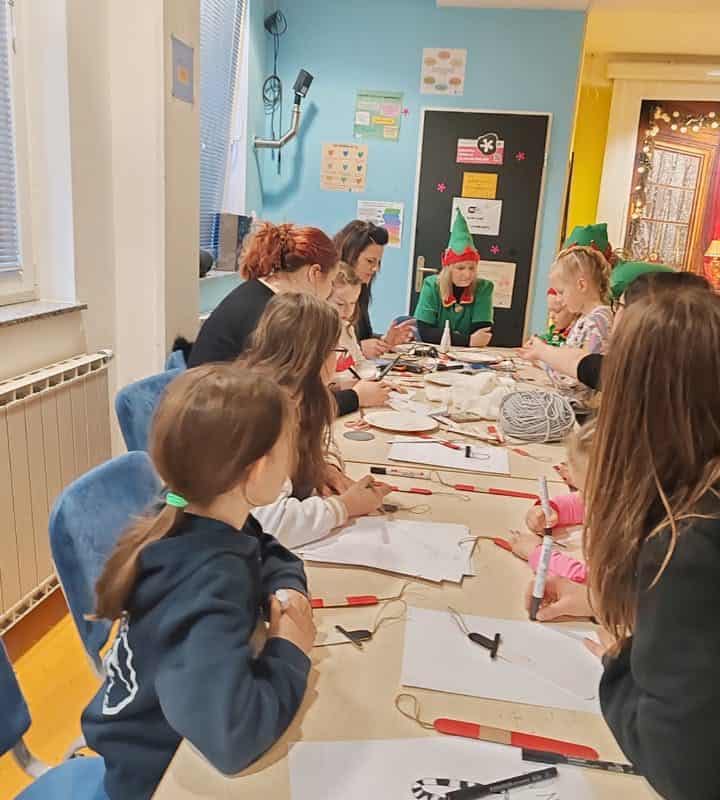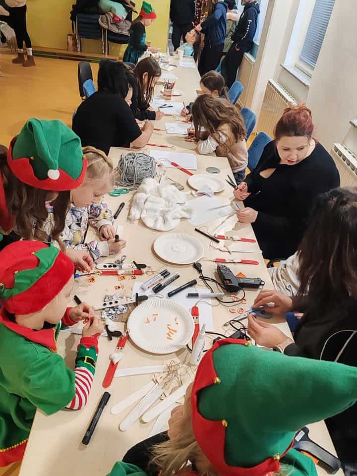 Da bi čas do prihoda Božička hitreje minil, so otroci sodelovali v ustvarjalnih delavnicah, kjer so izdelovali okraske za božično jelko. Gospa Božičkova in njeni škratje so poskrbeli za pravljično vzdušje, saj so otrokom prebrali čarobno zgodbo.