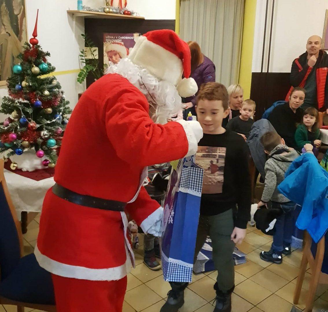najmlajše obišče in obdari Božiček. Na letošnjem obdarovanju se je skupini otrok iz mežiškega vrtca pridružil tudi Lovro.
