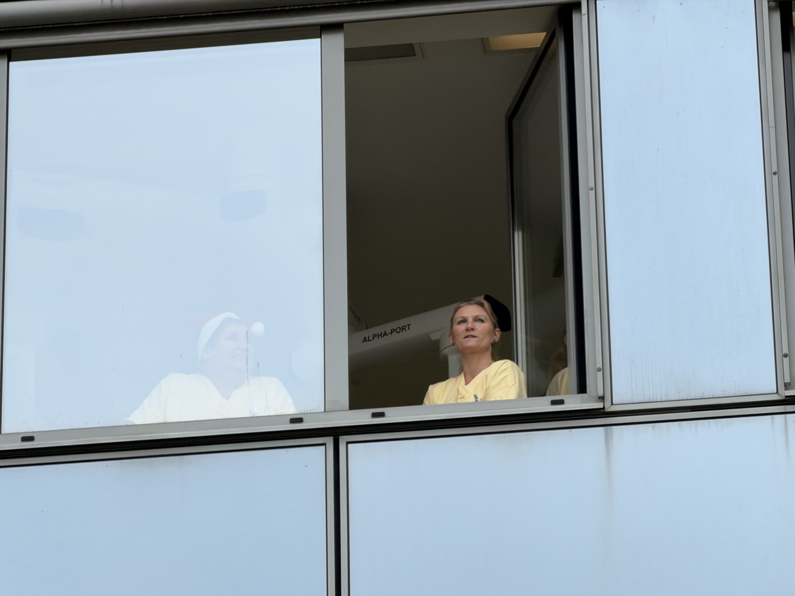 Pred bolnišnico se je zbralo lepo število gledalcev, ki so z navdušenjem opazovali pogumne Božičke pri njihovem veličastnem prihodu. Ti so med otroke razdelili bonbone in tople besede.